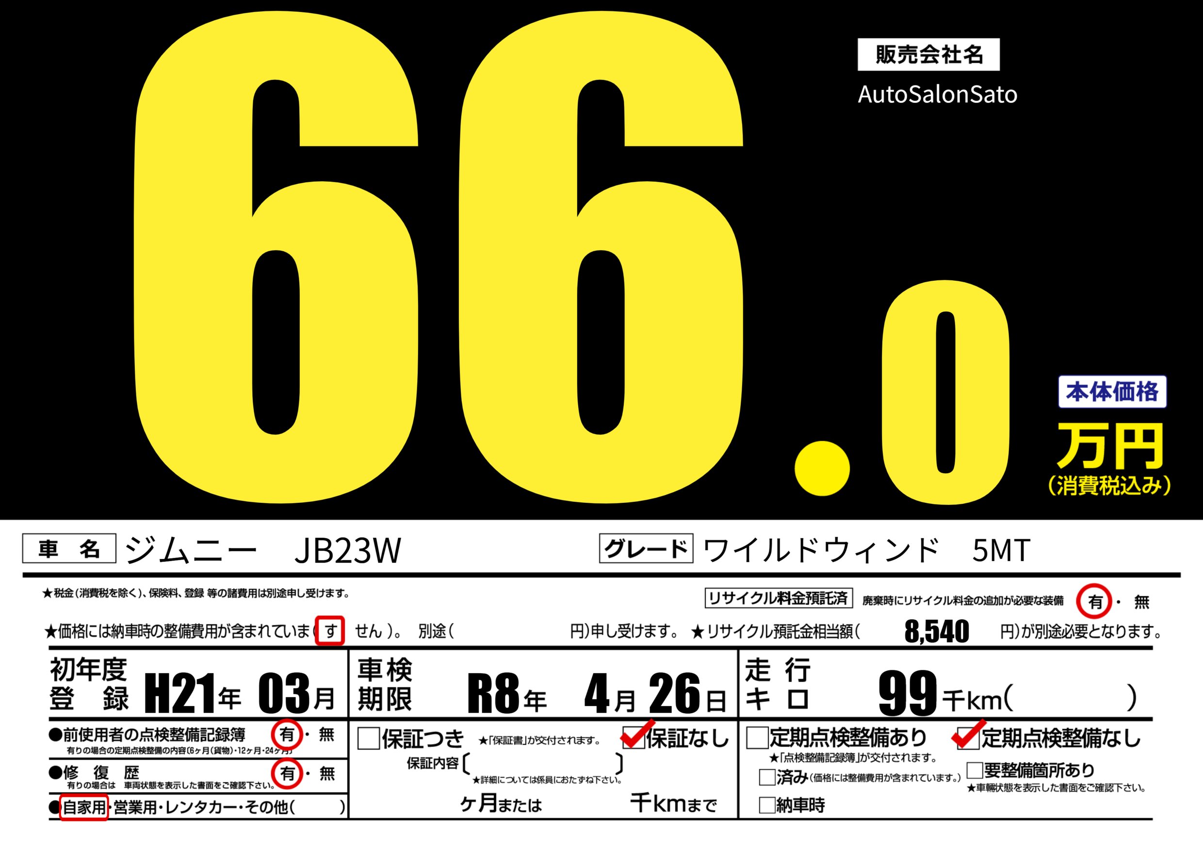 | 車検制限 | R8年 4月 26日 | ||