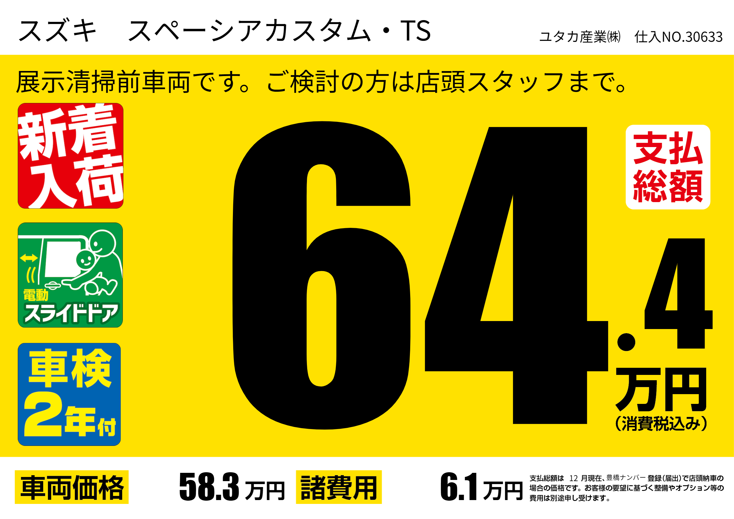 | 車名 | スズキ スペーシアカスタム・TS | グレード ミッション 排気量 |