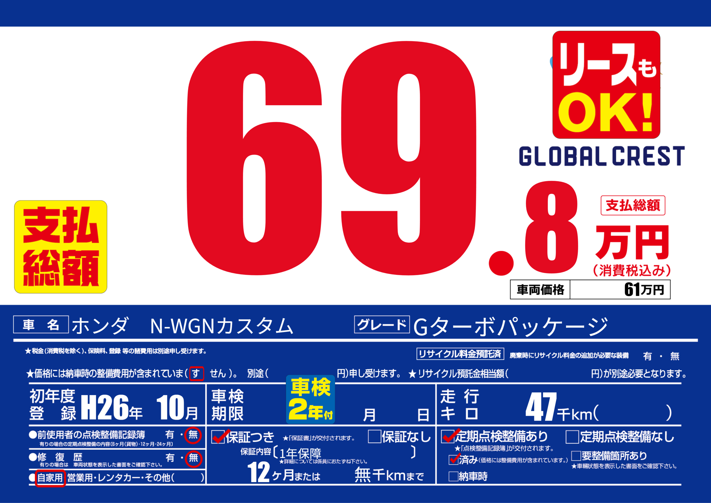 | 定期点検整備 | 定期点検整備あり 定期点検整備済み | ||