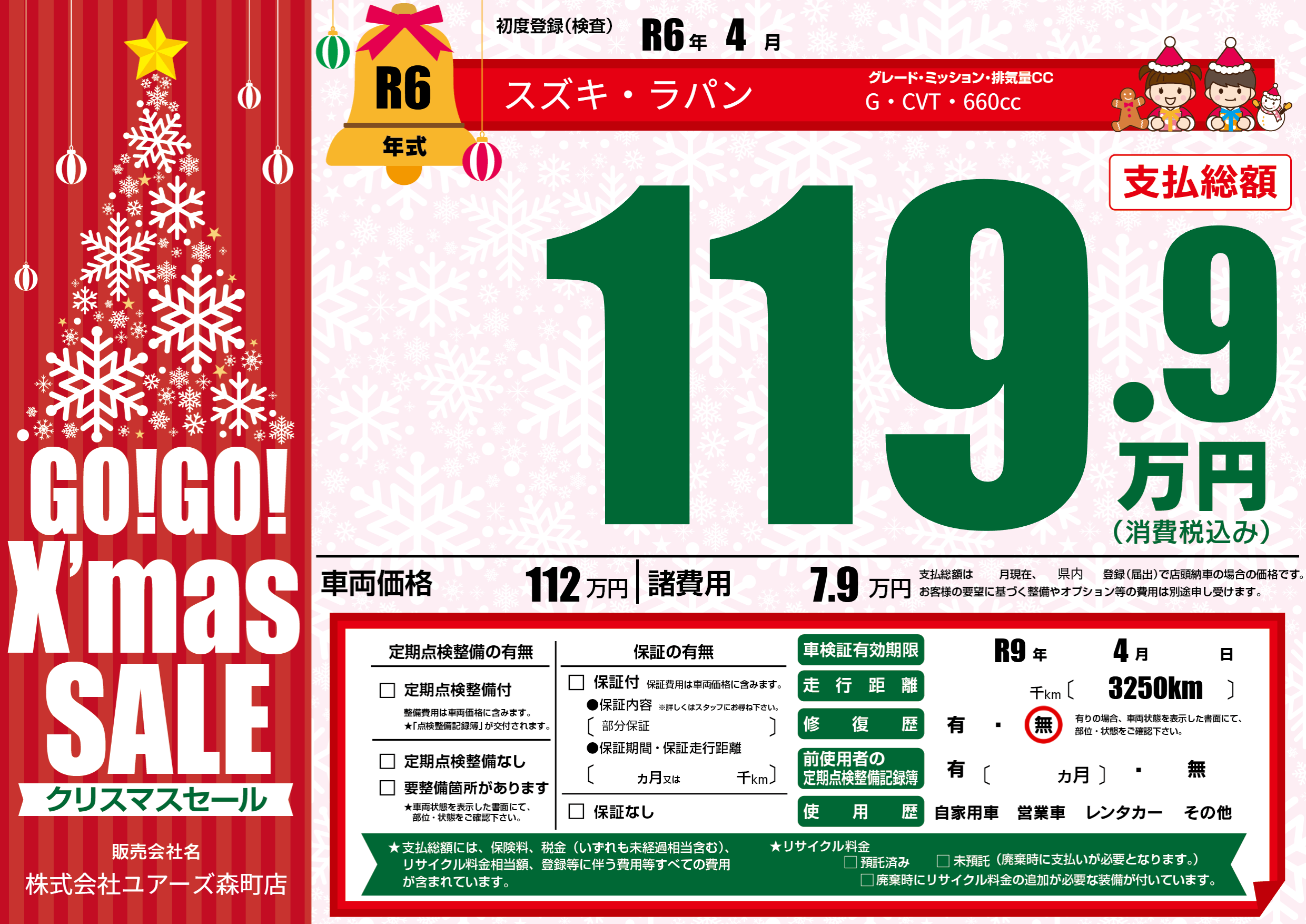 なし | 車検制限 | R9年4月---月 |