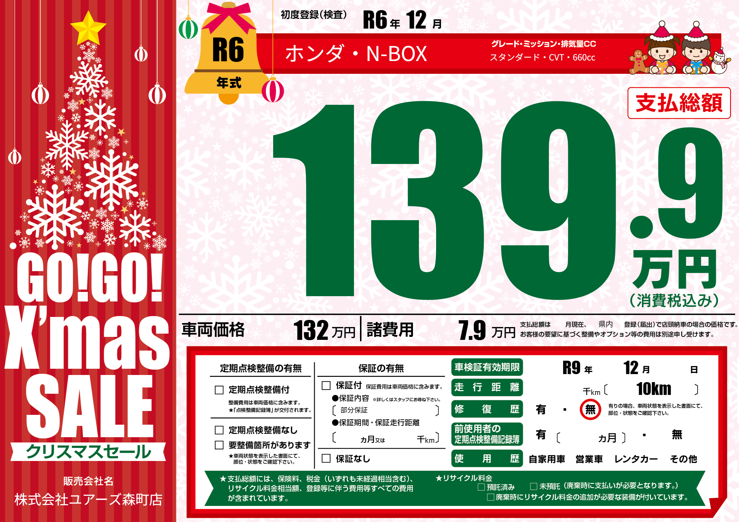| 走行キロ | - | 初年度登録 | R6年12月 |