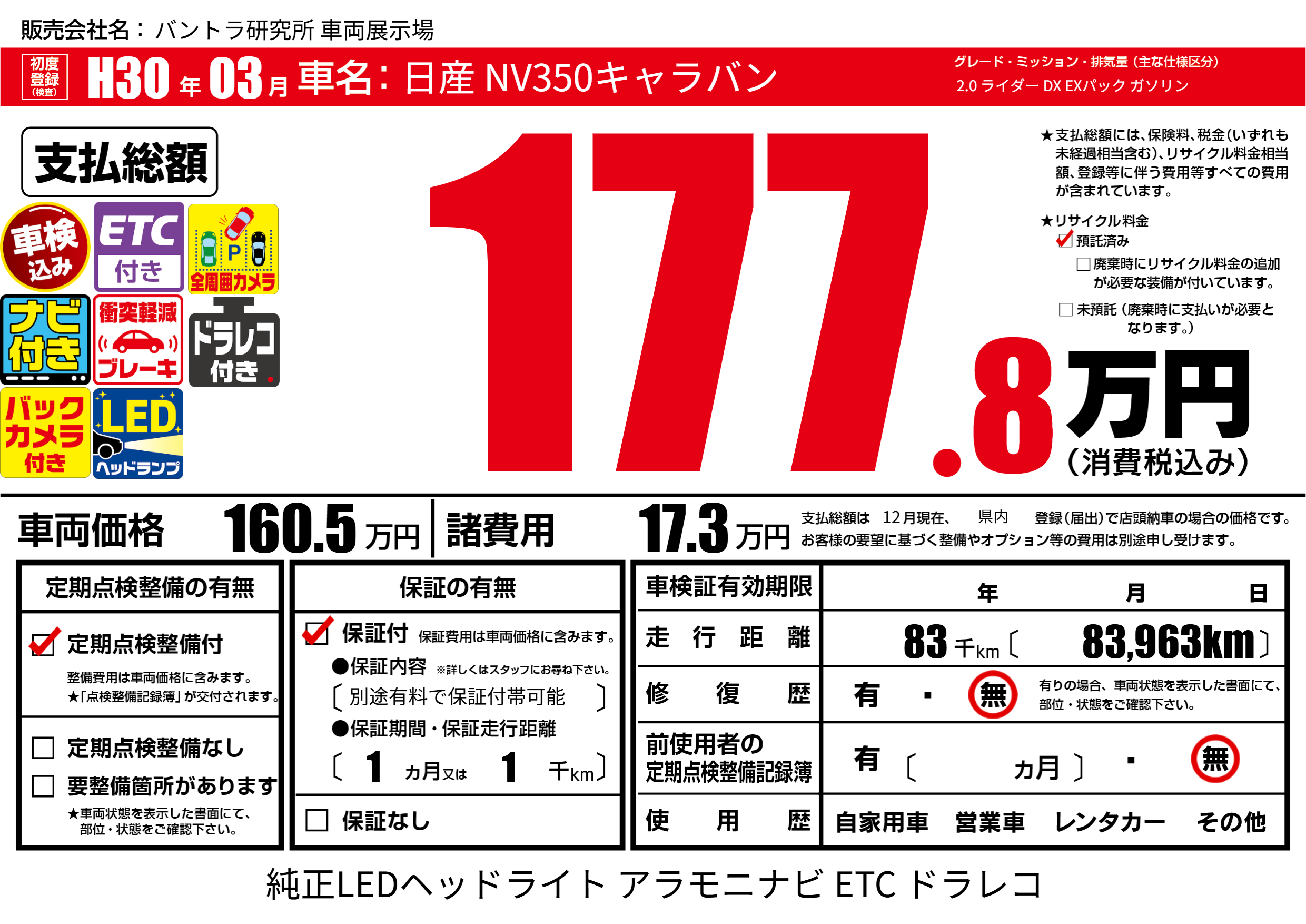 | 車検制限 | - 年 - 月 - 日 | ||