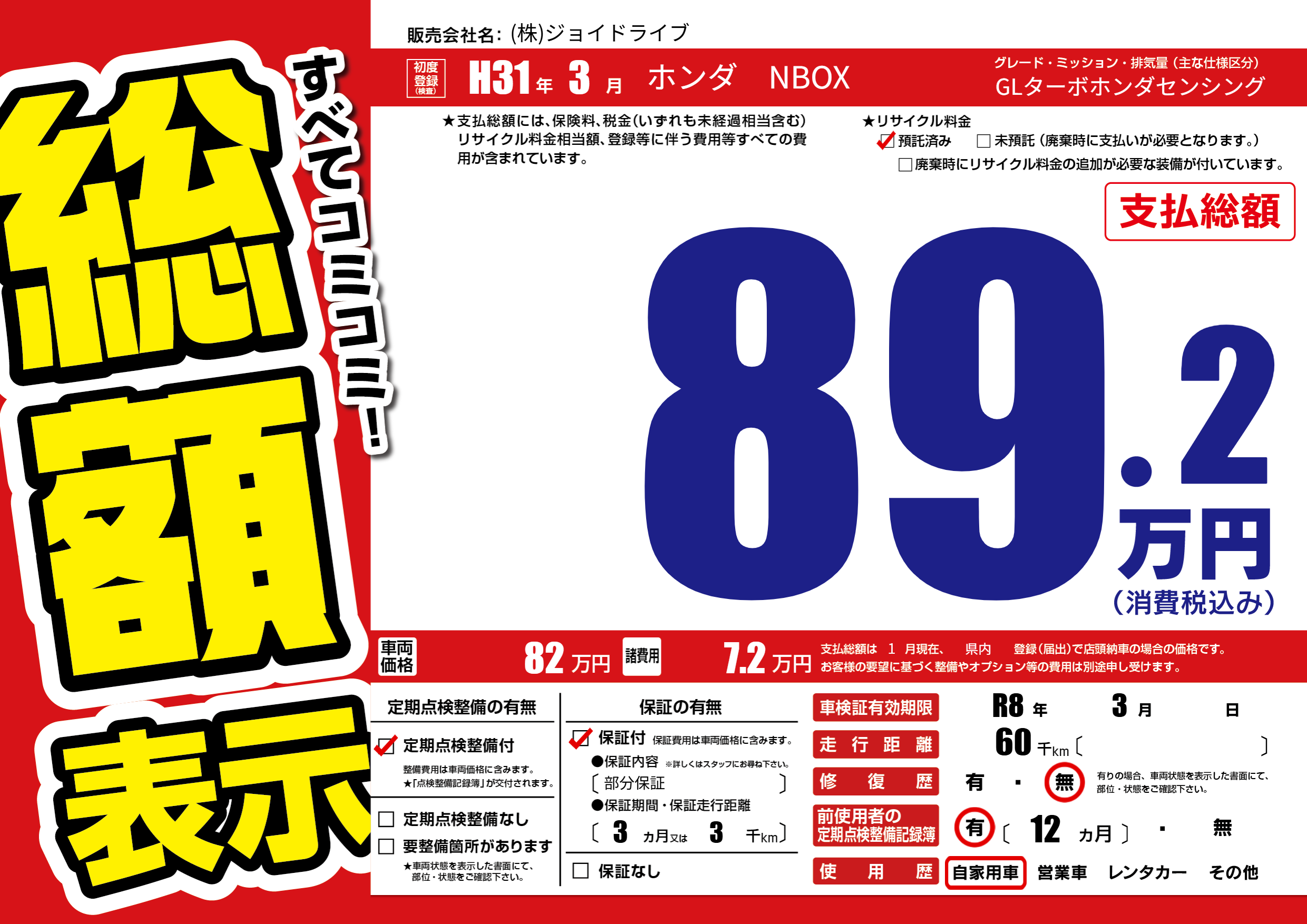 なし | 車検制限 | R8年3月---月 |