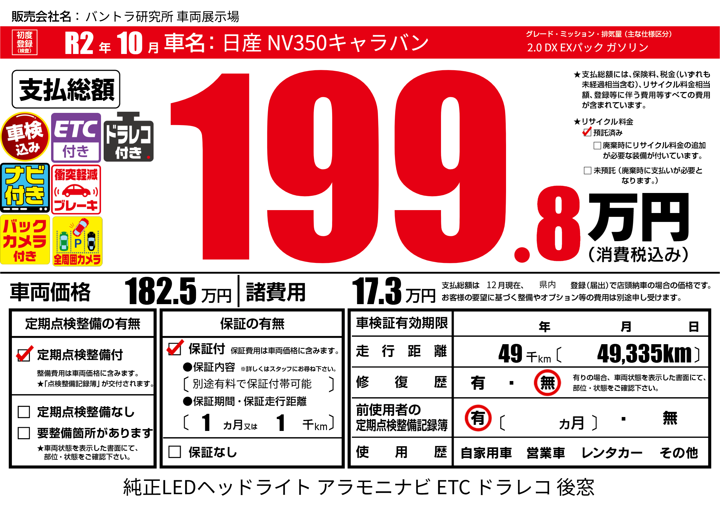 | 走行キロ | 4.9万km | ||