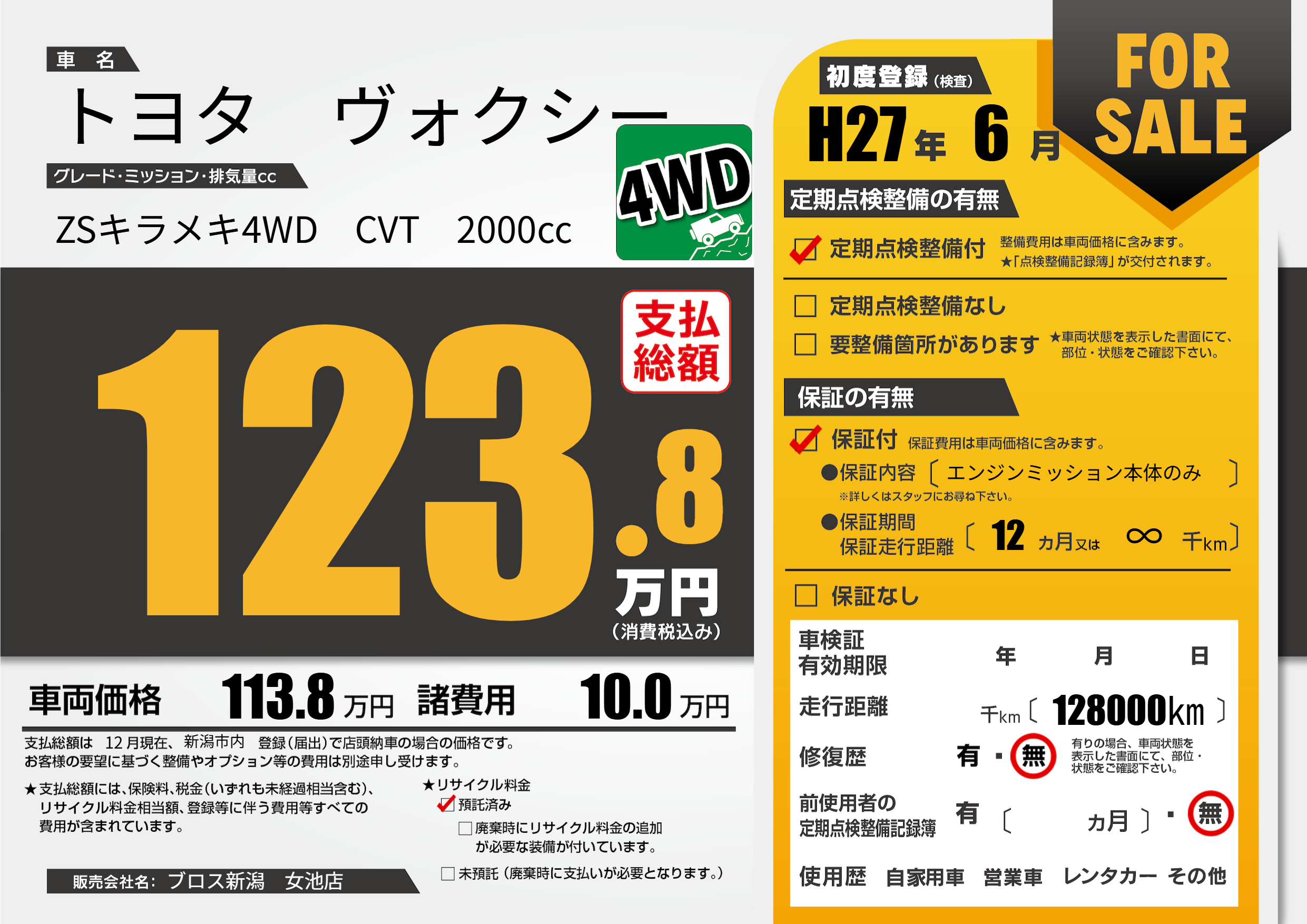 | 走行キロ | - | 初年度登録 | H27年6月 |