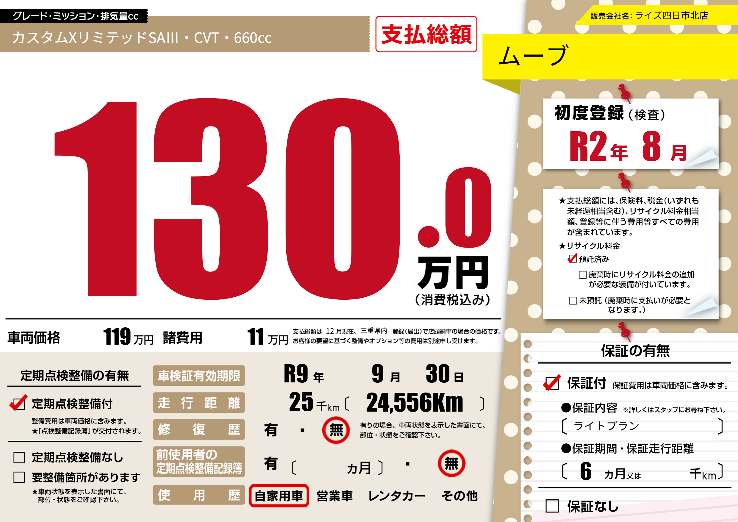 | 車名 | ムーブ | グレード ミッション 排気量 |