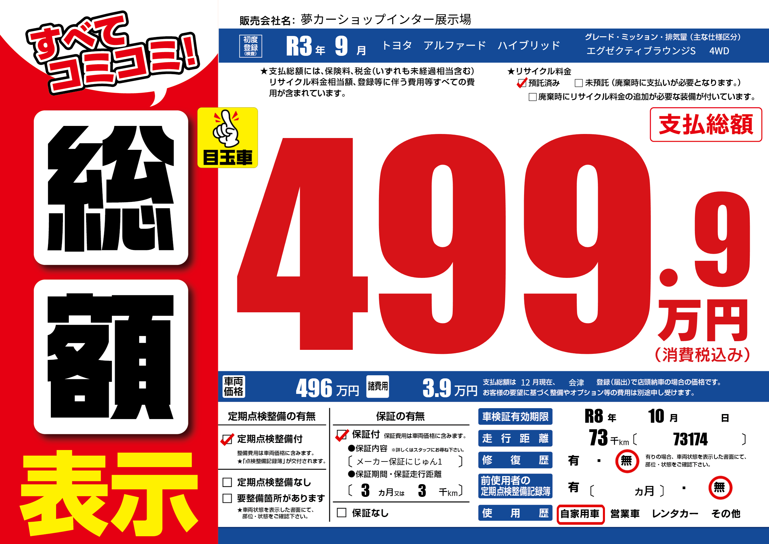 | 車名 | トヨタ アルファード ハイブリッド | グレード ミッション 排気量 |