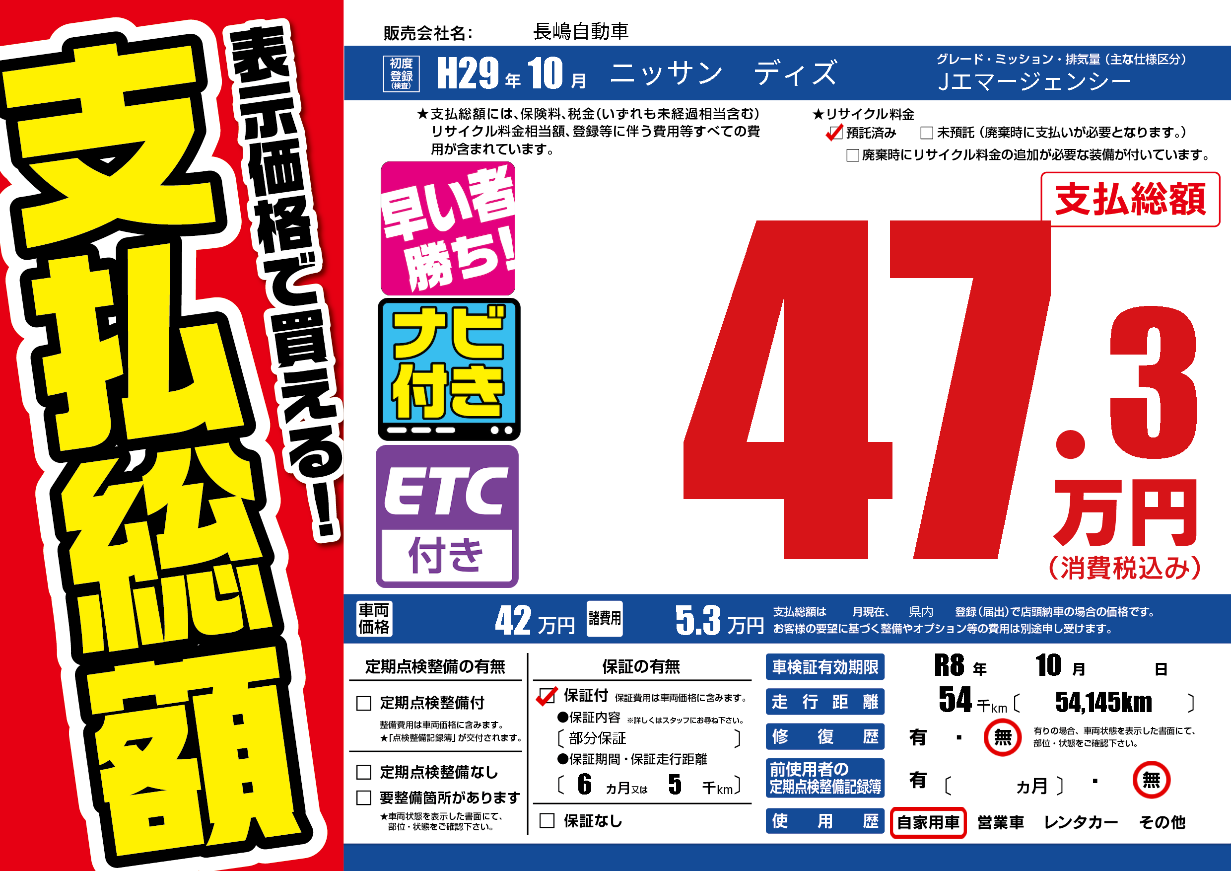 なし | 車検制限 | R8年10月---月 |