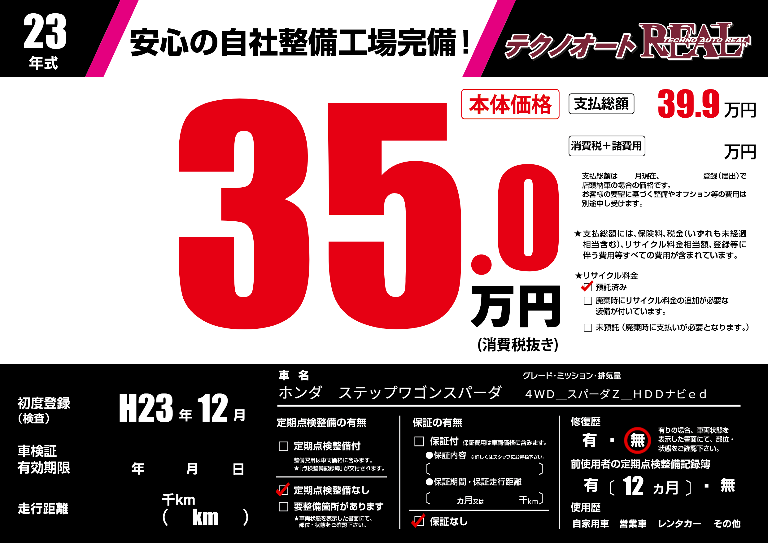 | 走行キロ | - | 初年度登録 | H23年12月 |