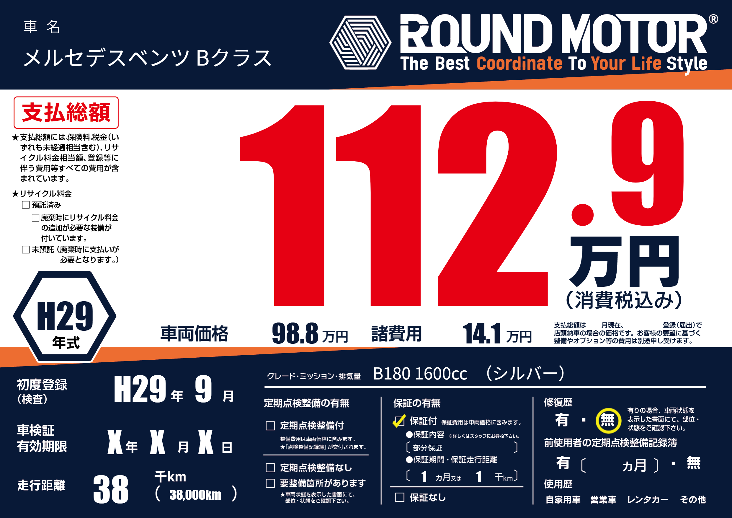 | 車検制限 | X年 X月 X日 | ||