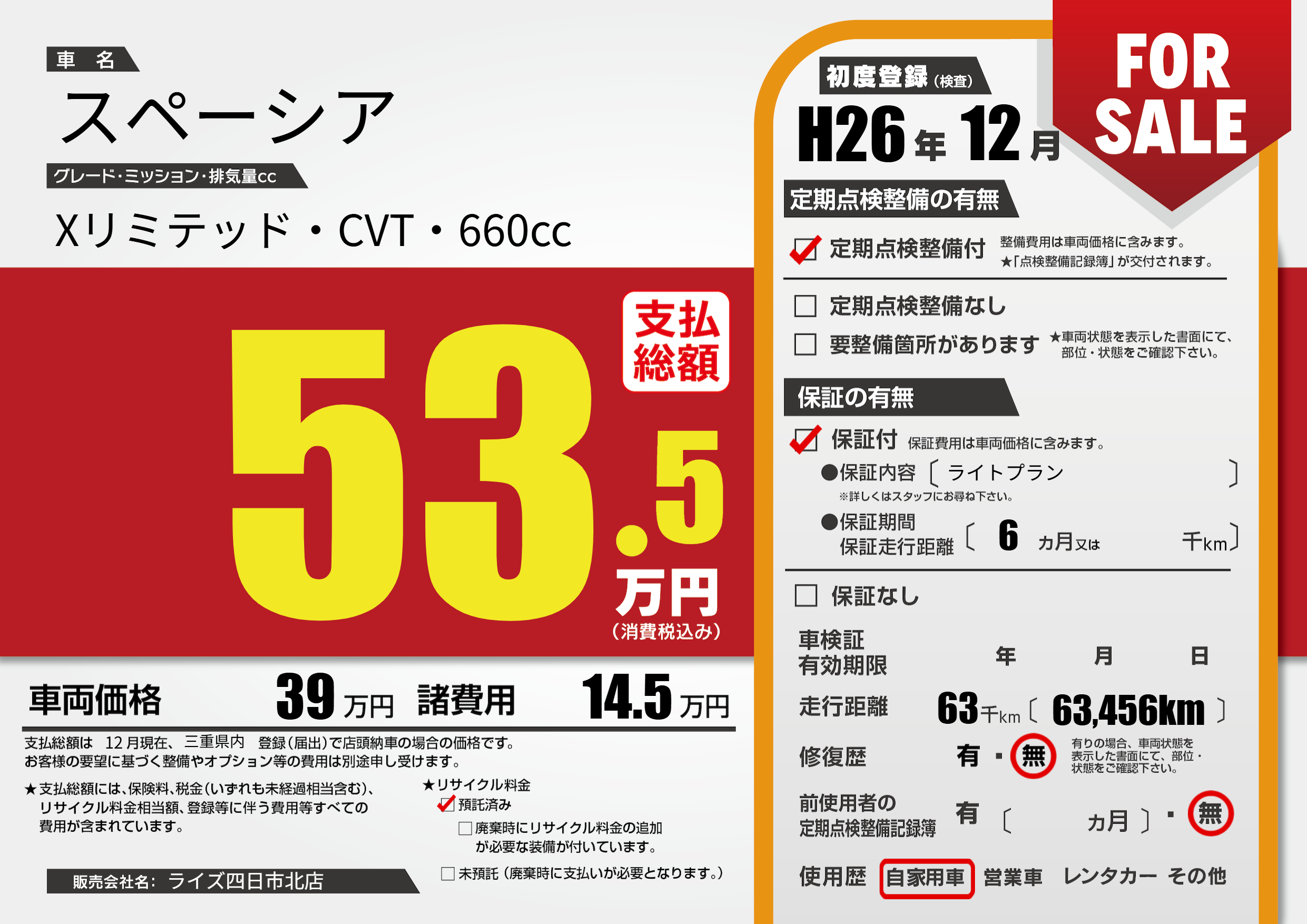 | 初年度登録 | H26年12月 | ||