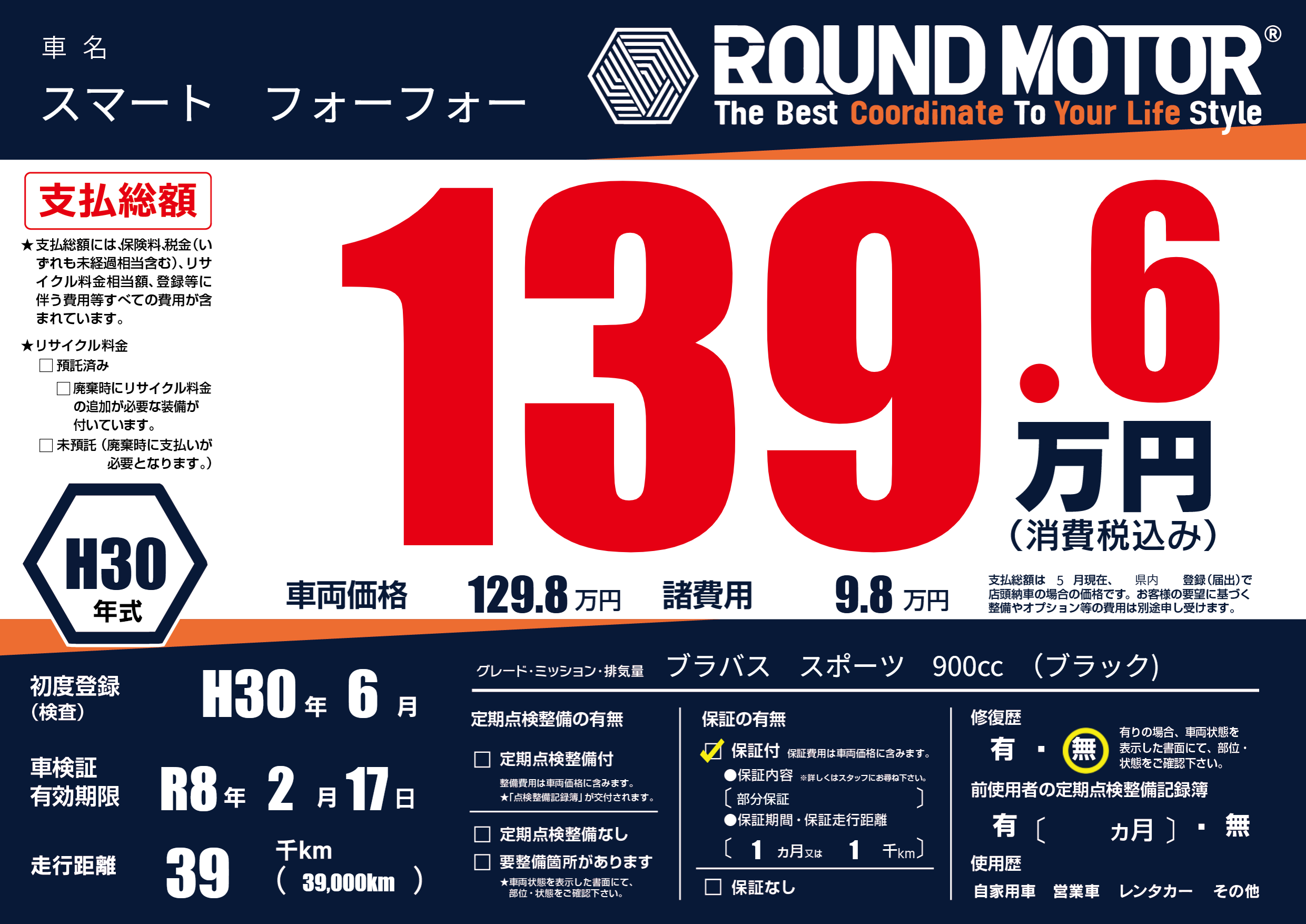 | 車名 | スマート フォーフォー | グレード ミッション 排気量 |