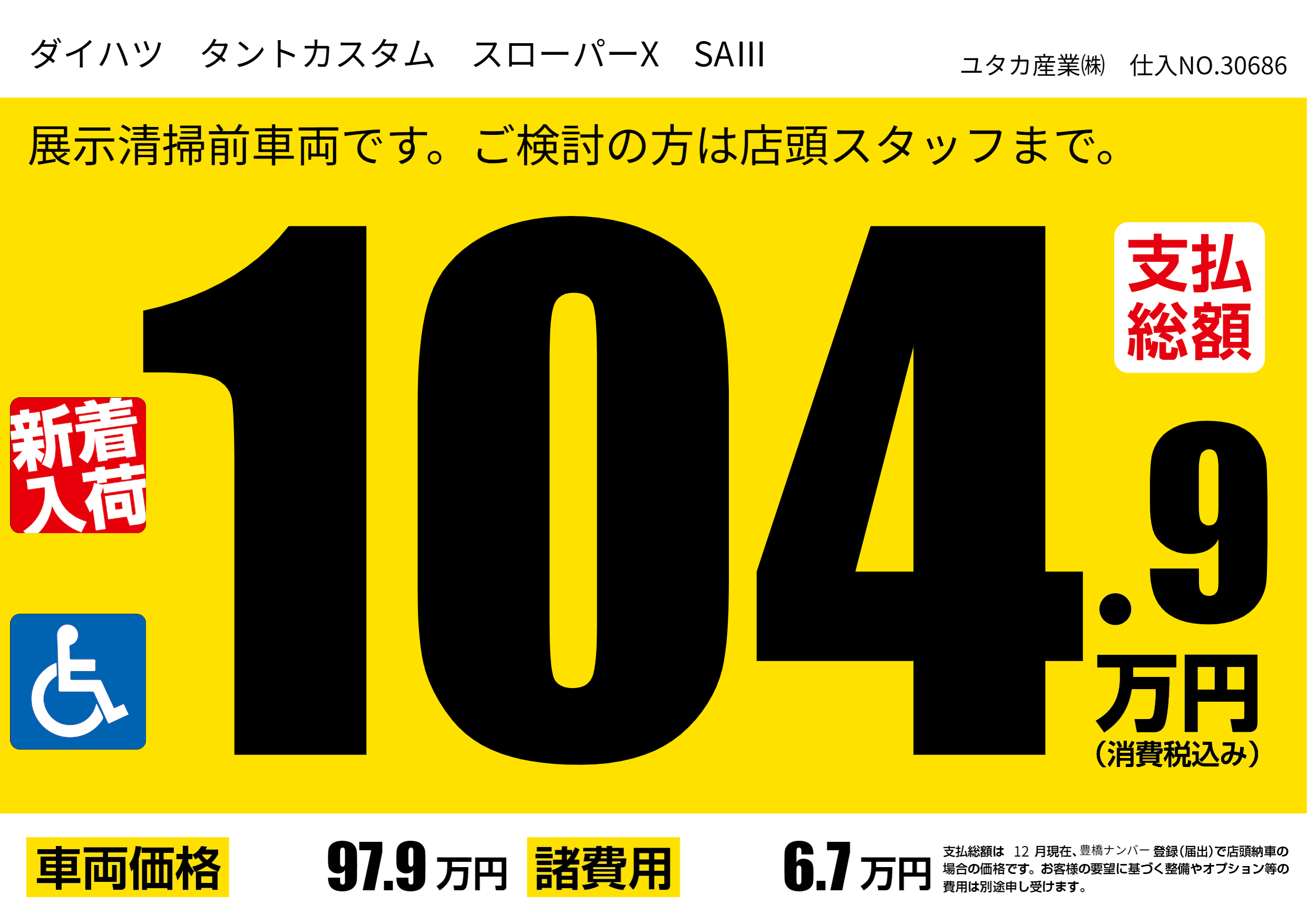 展示清掃前車両です。ご検討の方は店頭スタッフまで。 |