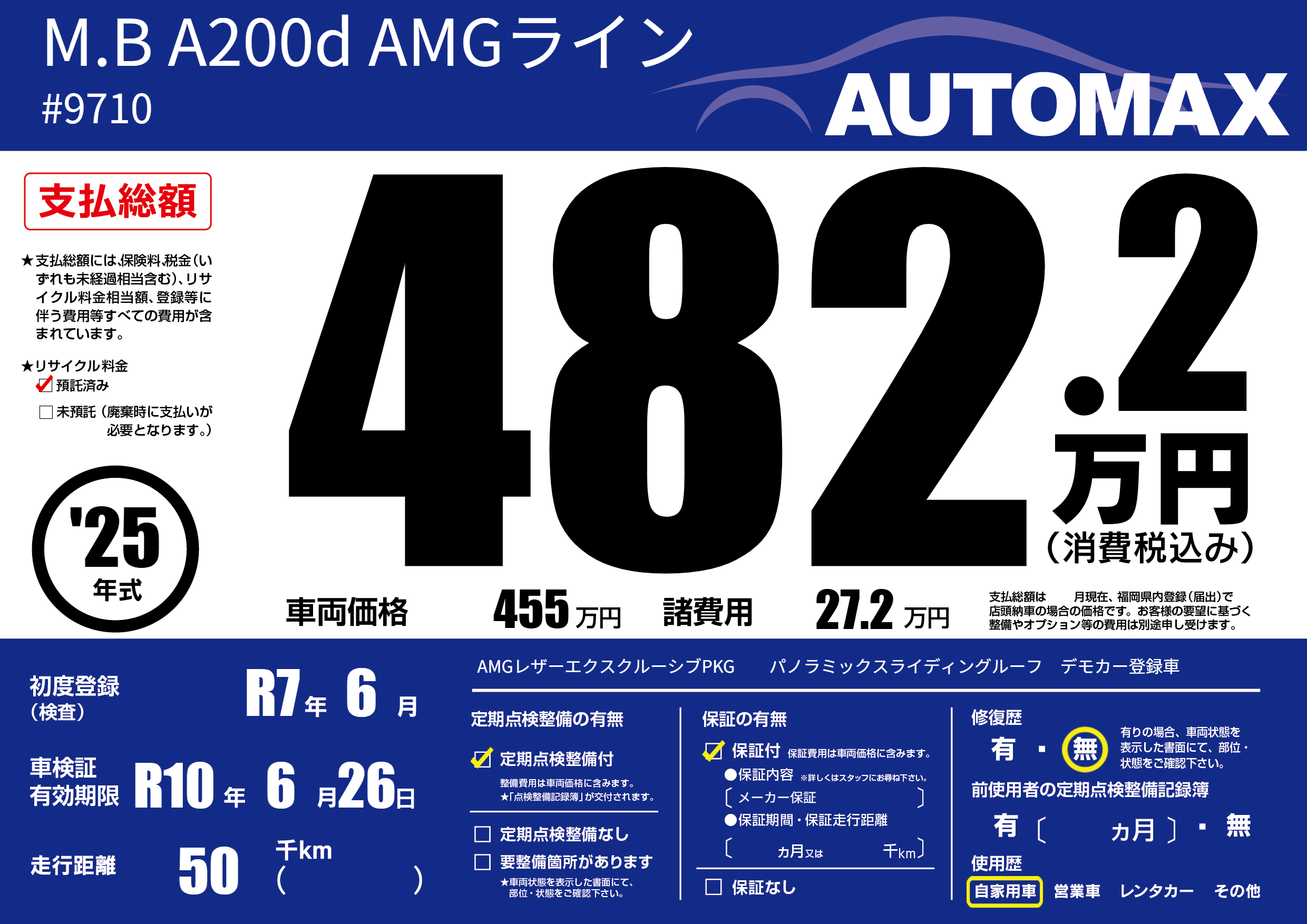 | 車名 | M.B A200d AMGライン | グレード ミッション 排気量 |