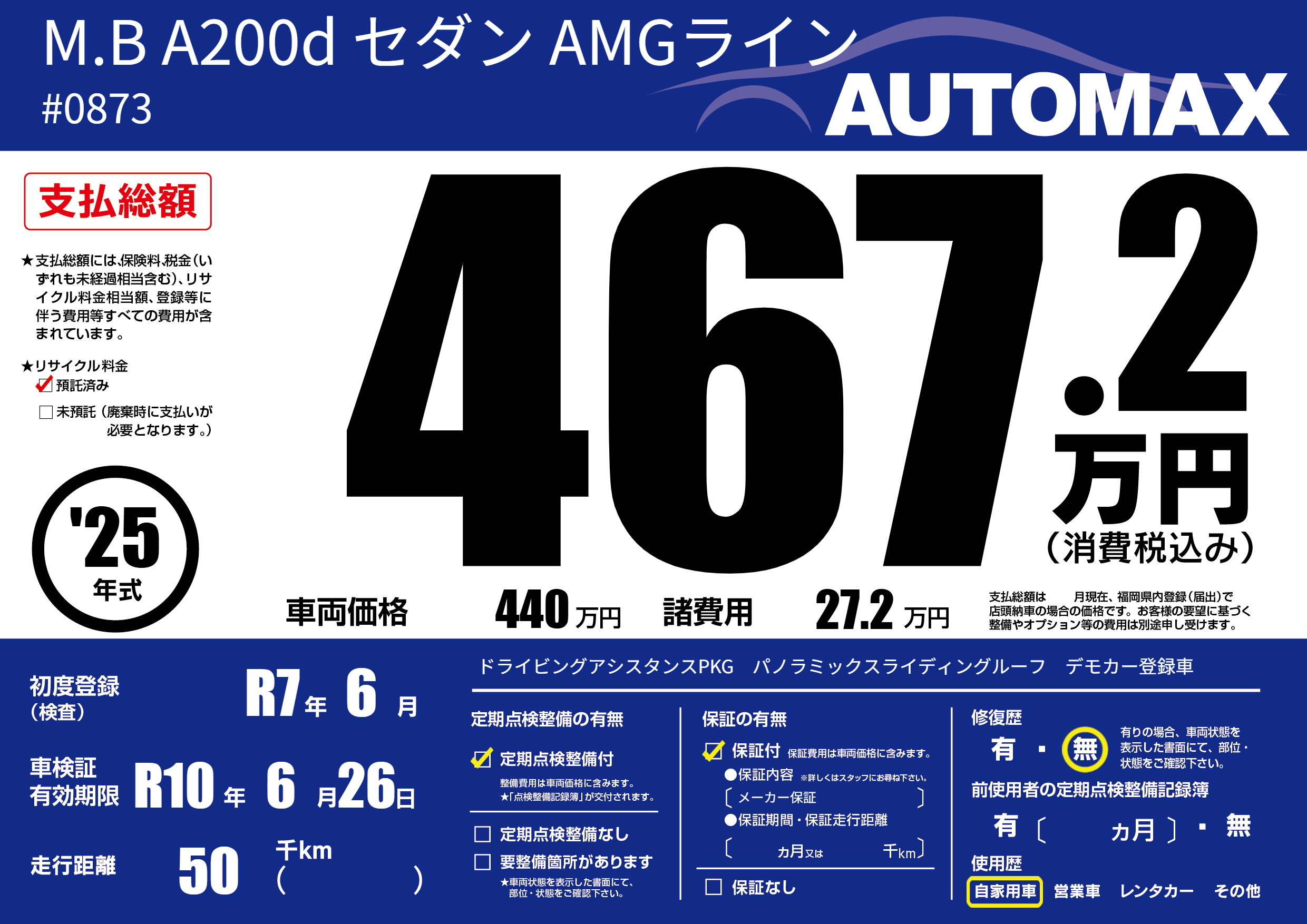 | 走行キロ | 5万km | 初年度登録 | R7年6月 |