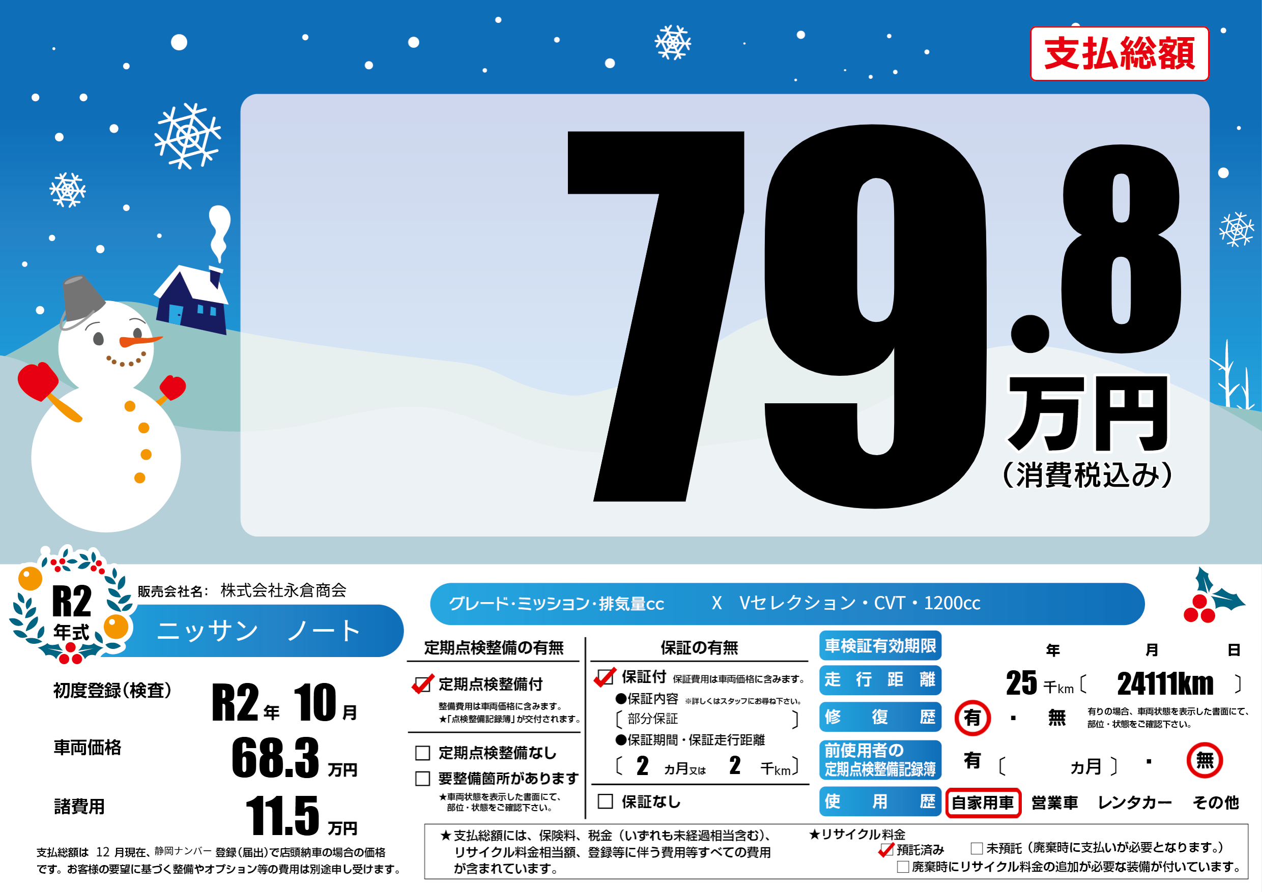 | 車名 | ニッサン ノート | グレード ミッション 排気量 |