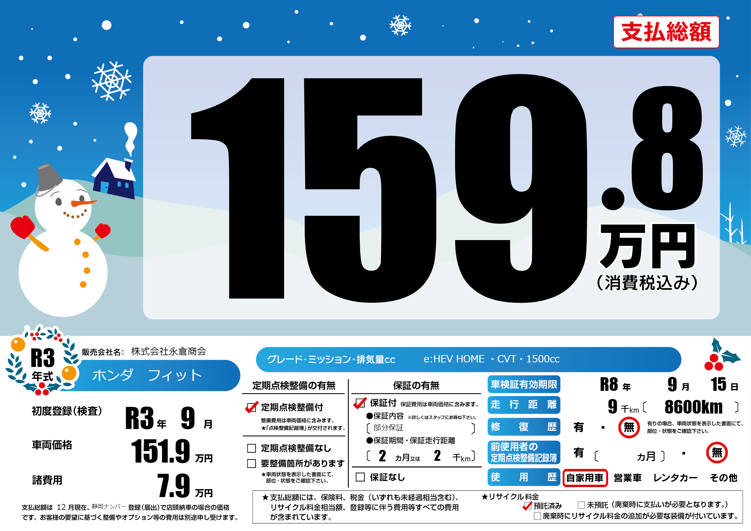 | 走行キロ | 0.9万km | 初年度登録 | R3年9月 |
