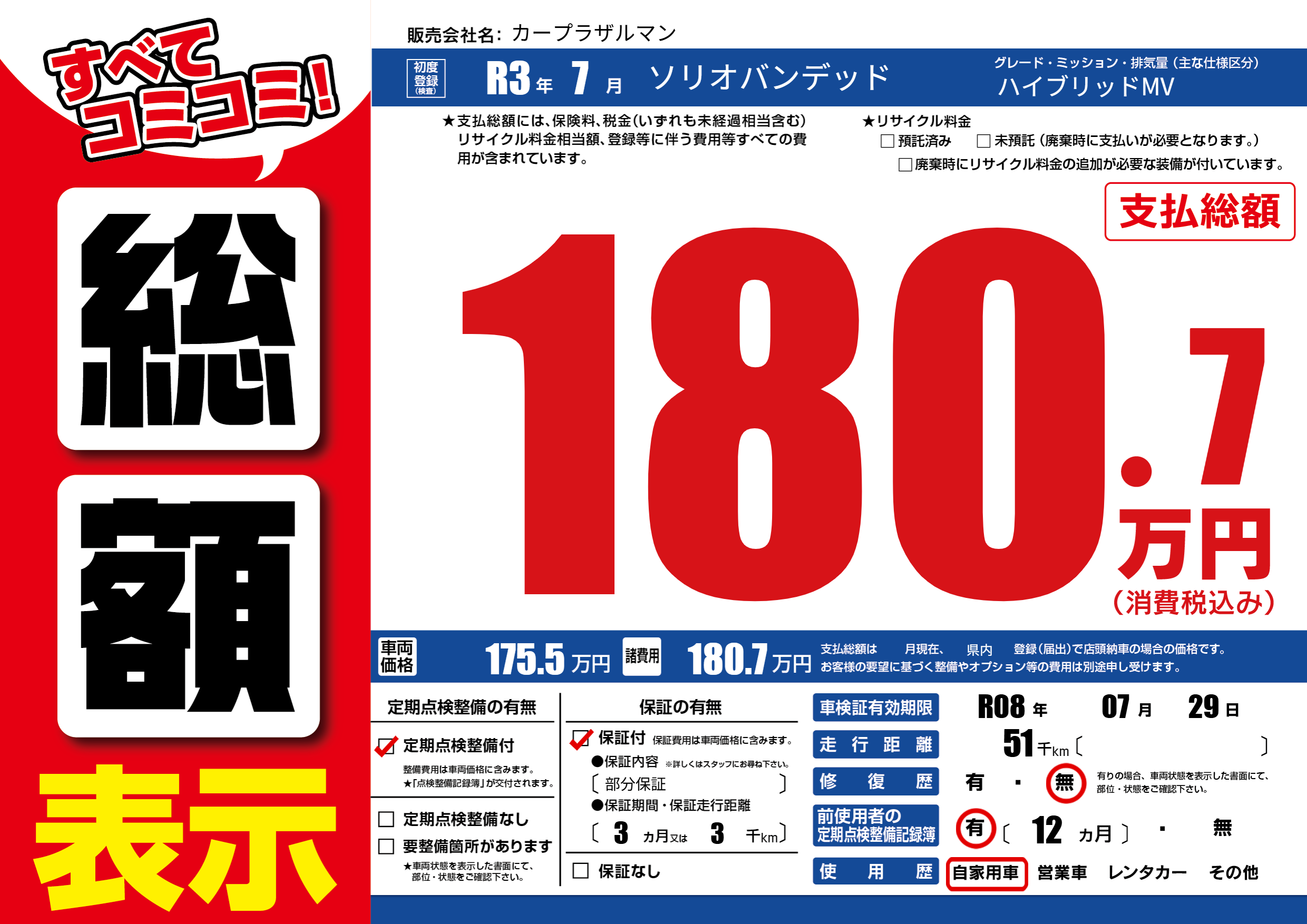 | 車名 | ソリオバンデッド | グレード ミッション 排気量 |