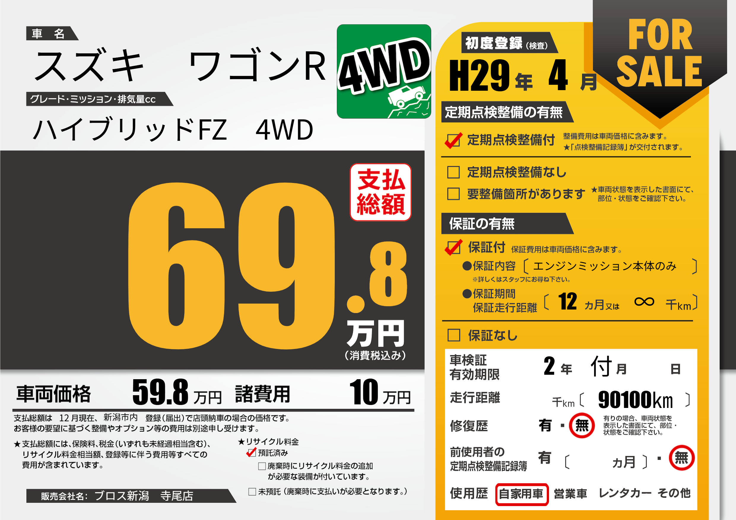 | 車名 | スズキ ワゴンR | グレード ミッション 排気量 |