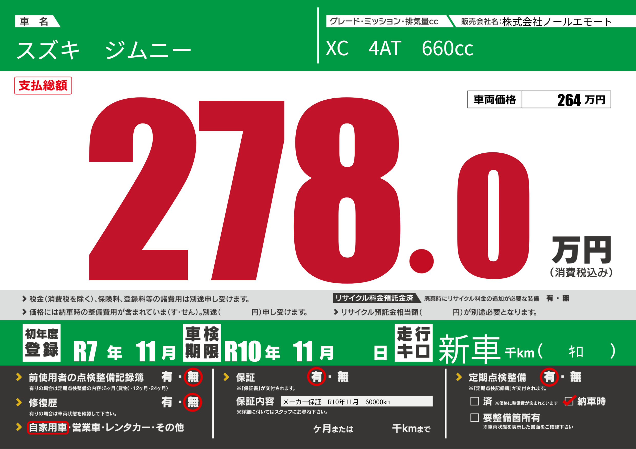 | 車検制限 | R10年 11月 - 日 | ||