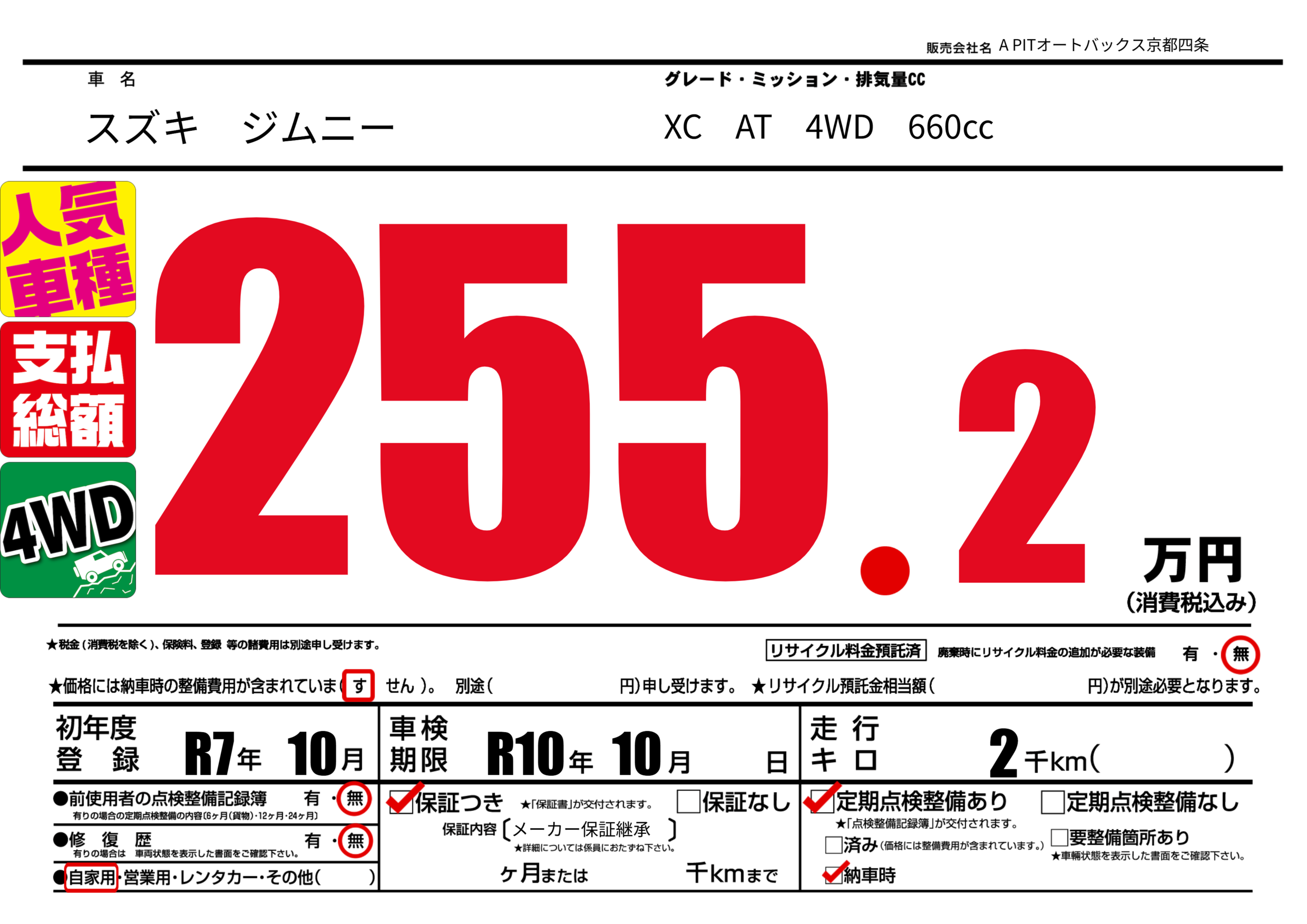 | 車検制限 | R10年 10月 - 日 | ||