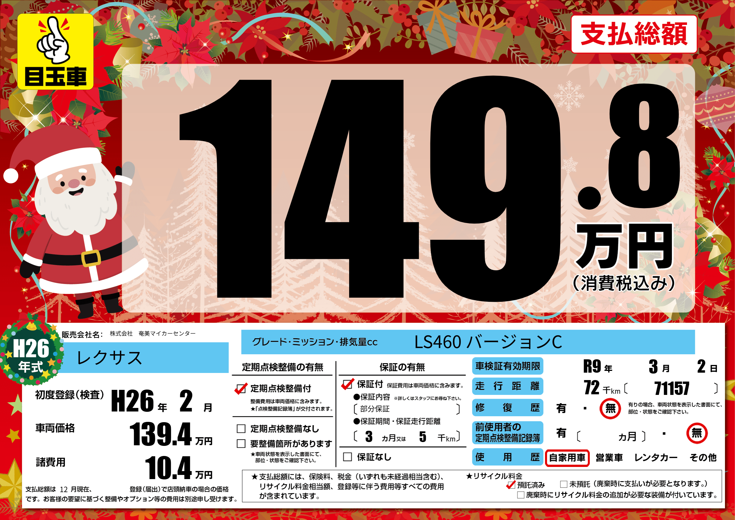 | 車名 | レクサス | グレード ミッション 排気量 |