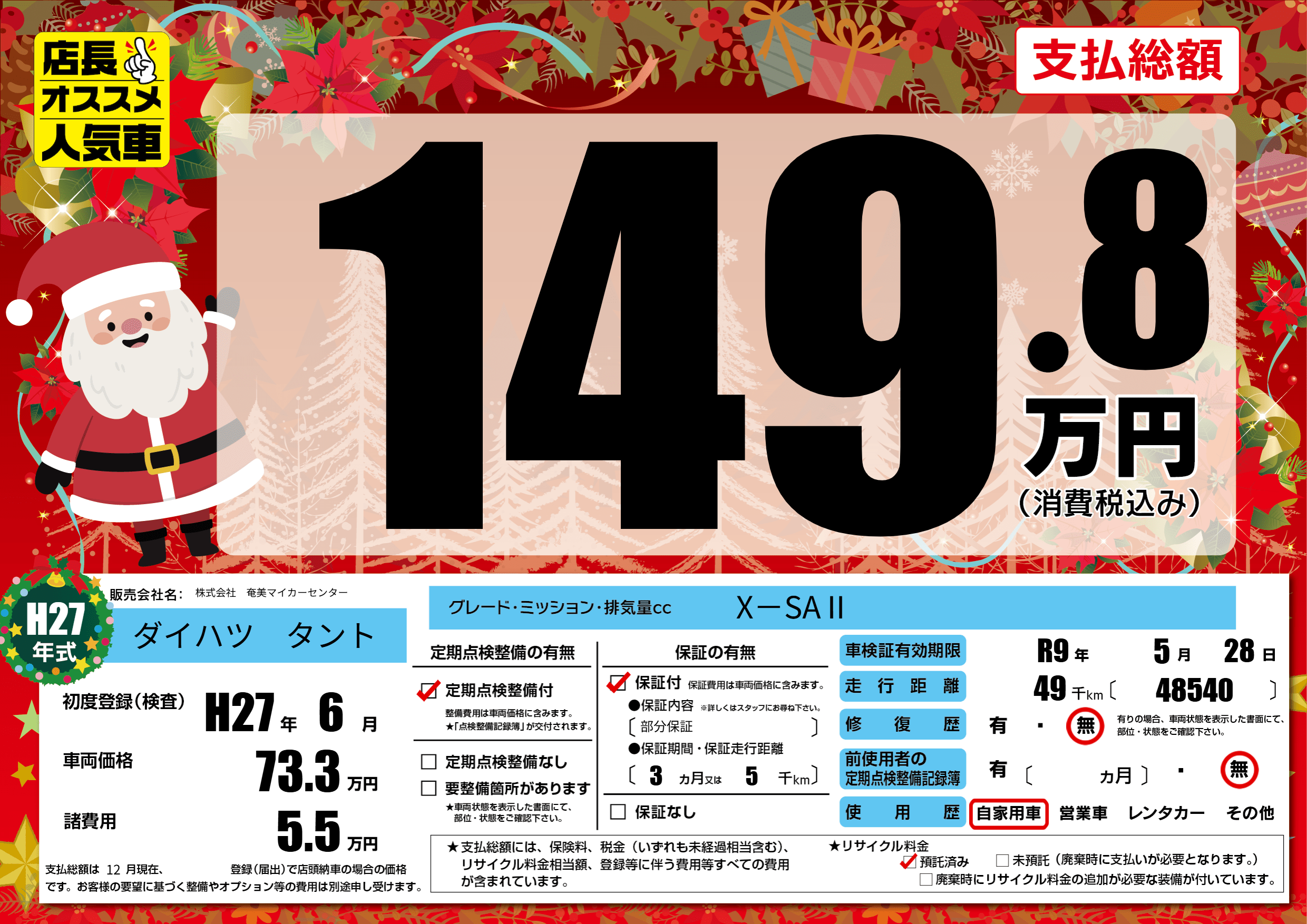 | 走行キロ | 4.9万km | 初年度登録 | H27年6月 |