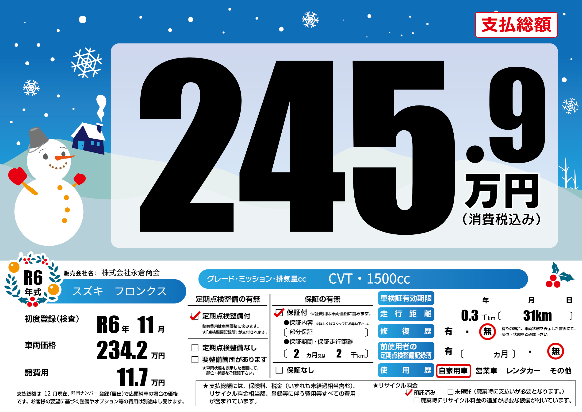 | 初年度登録 | R6年11月 | ||