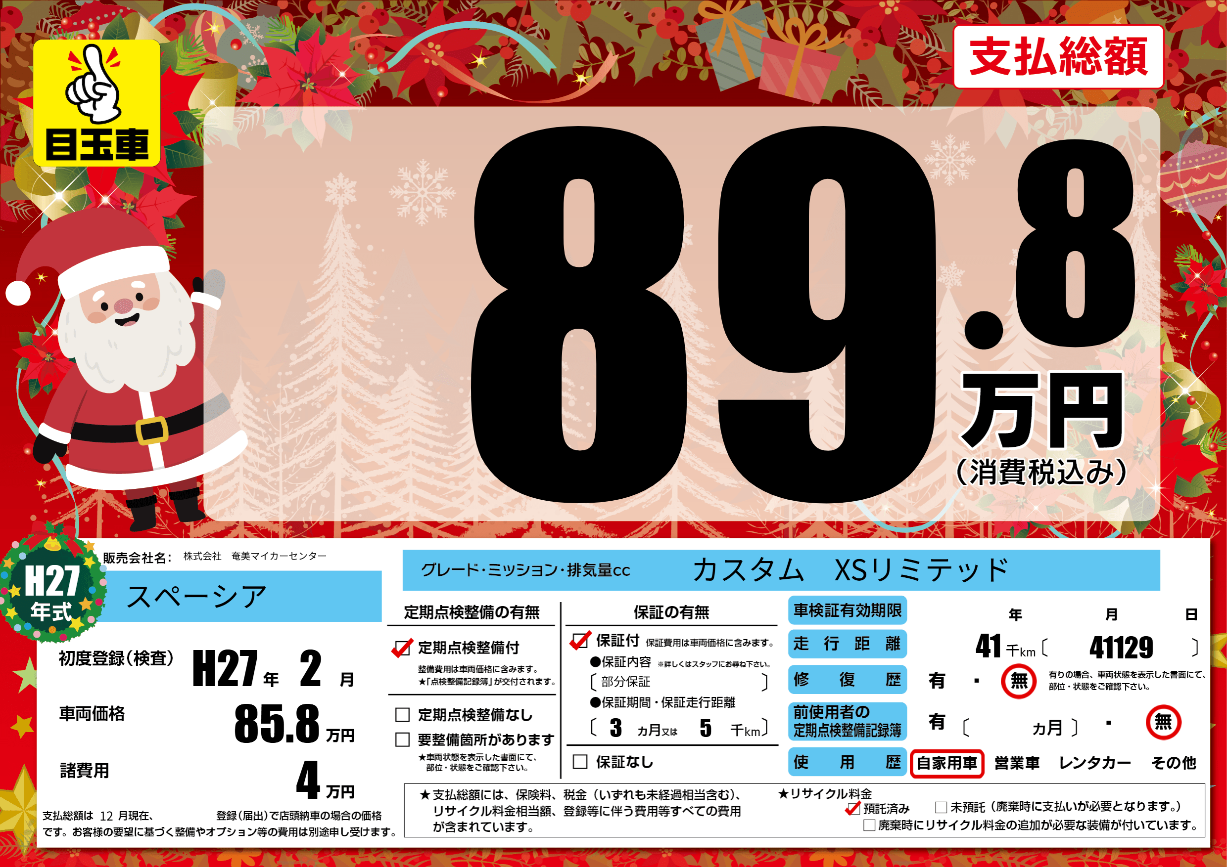 | 走行キロ | 4.1万km | 初年度登録 | H27年2月 |