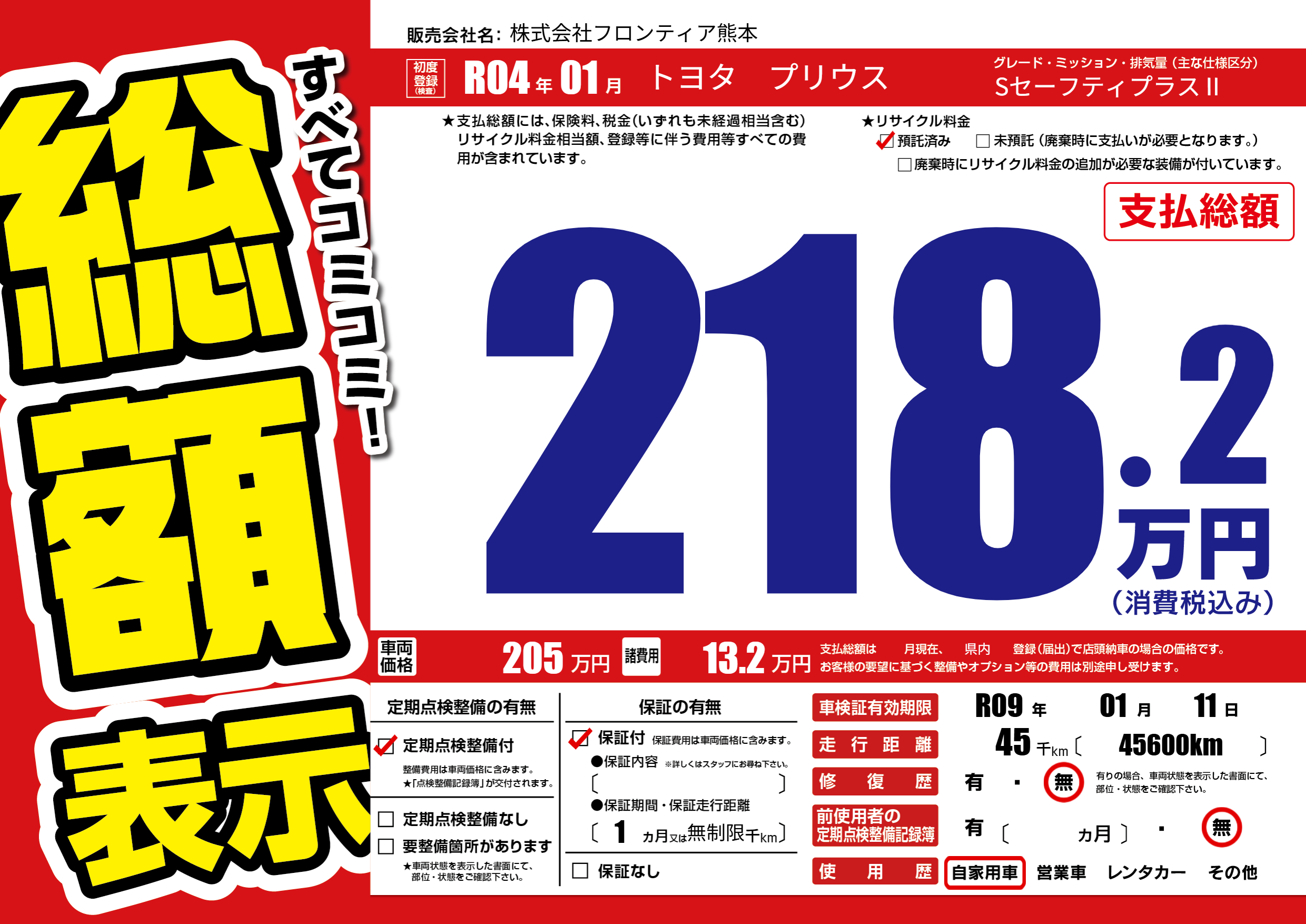 | 定期点検整備 | 定期点検整備あり | ||