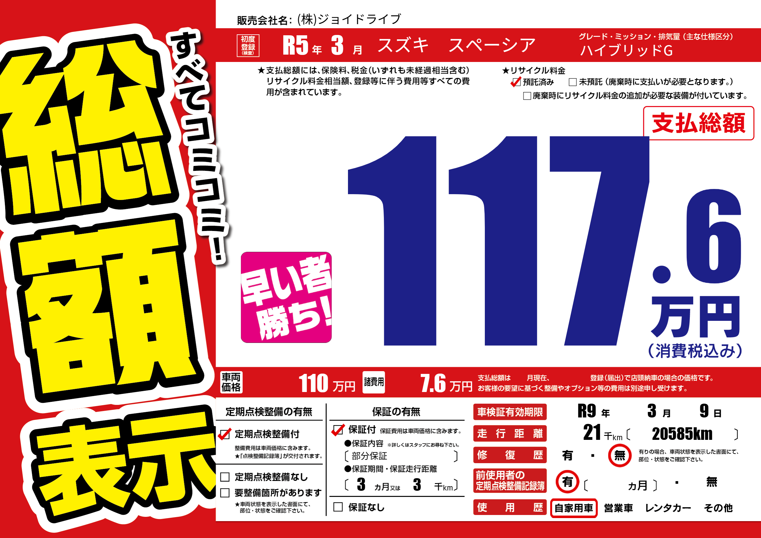 なし | 車検制限 | R9年3月9月 |