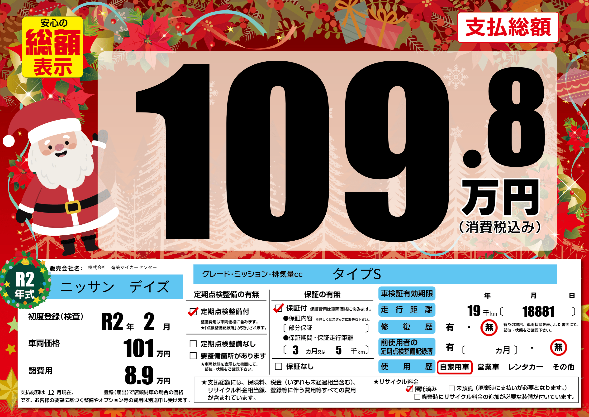 | 車名 | ニッサン デイズ | グレード ミッション 排気量 |
