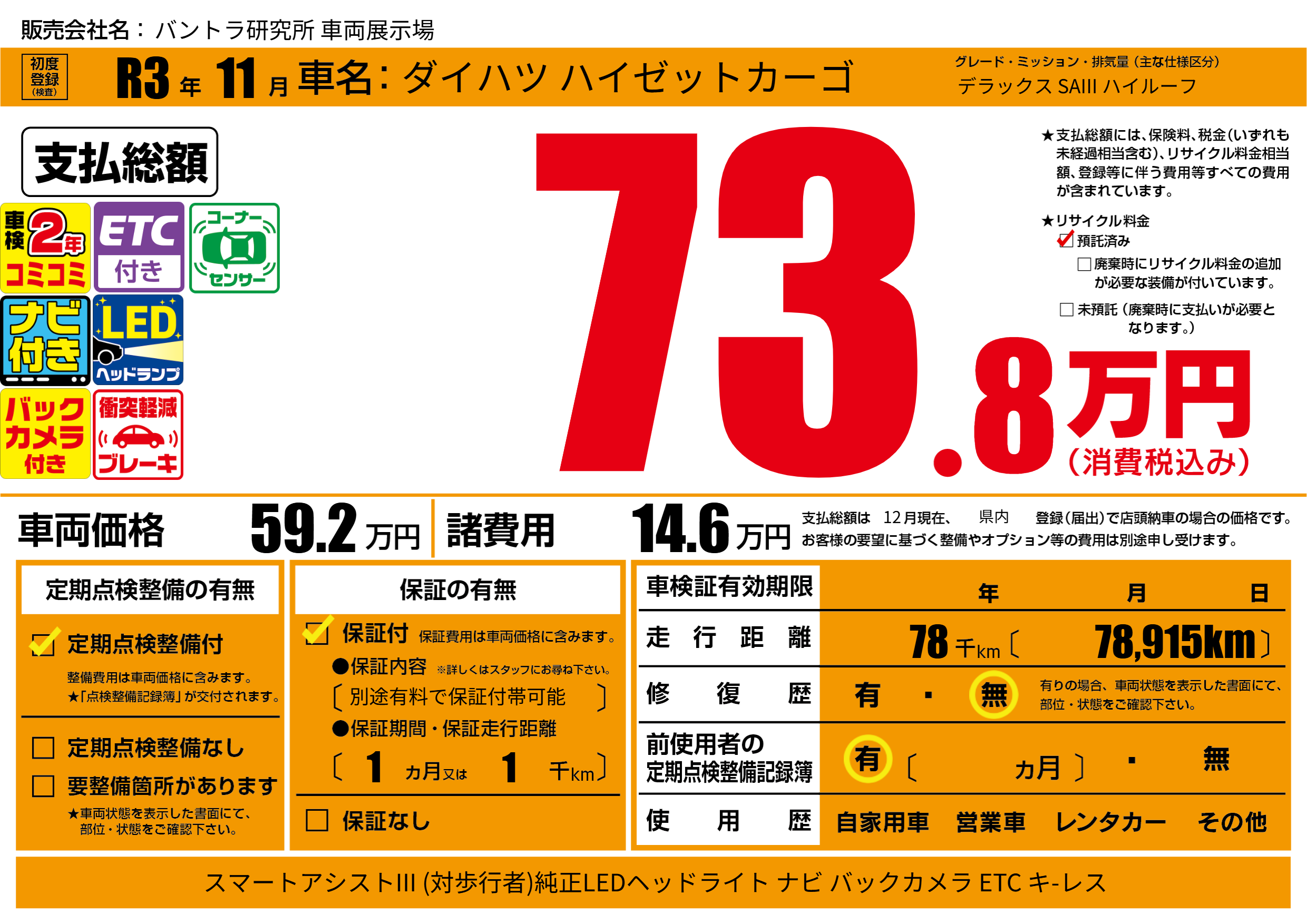 | 走行キロ | 7.8万km | 初年度登録 | R3年11月 |