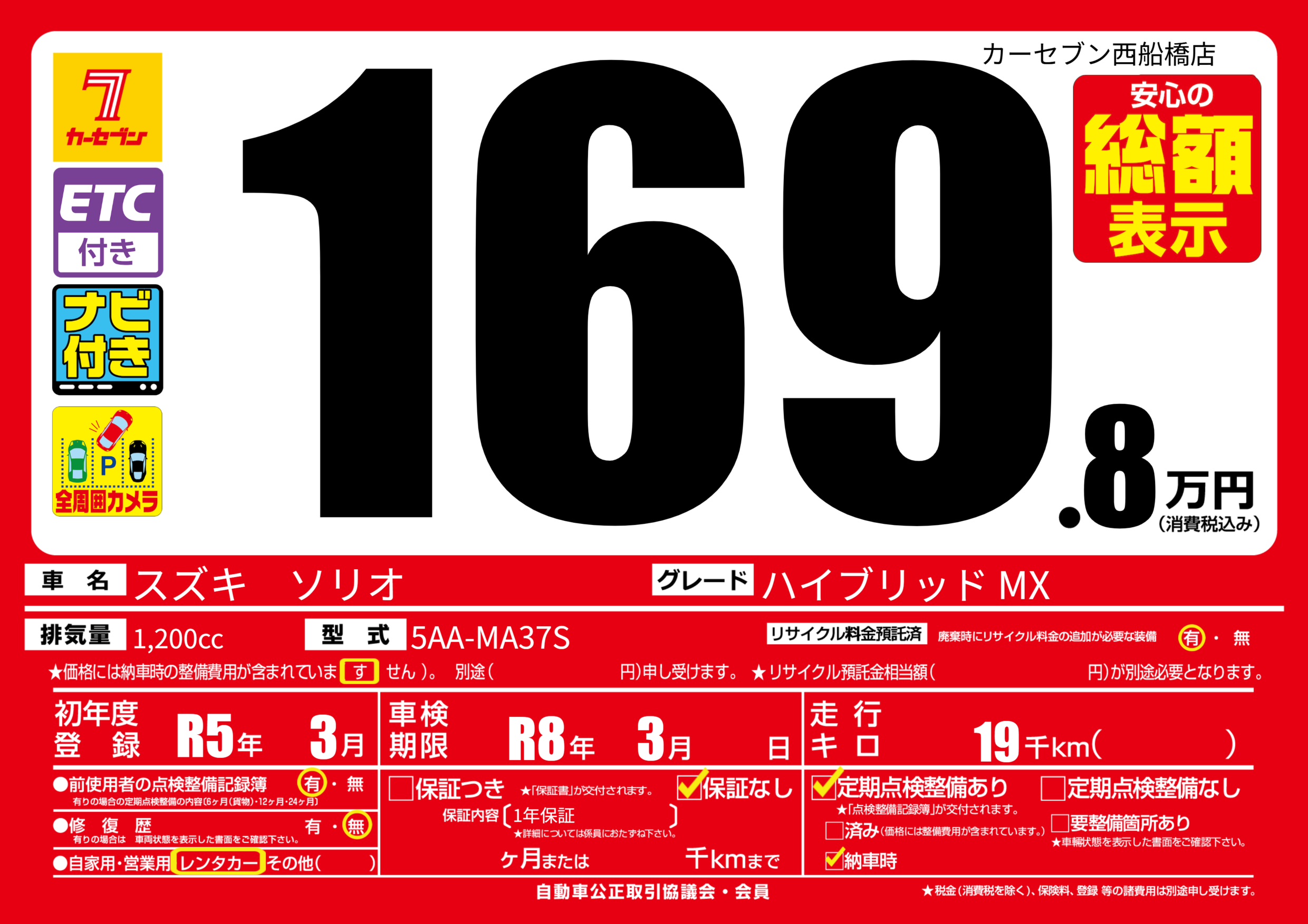 | 車検制限 | R8年 3月 - 日 | ||