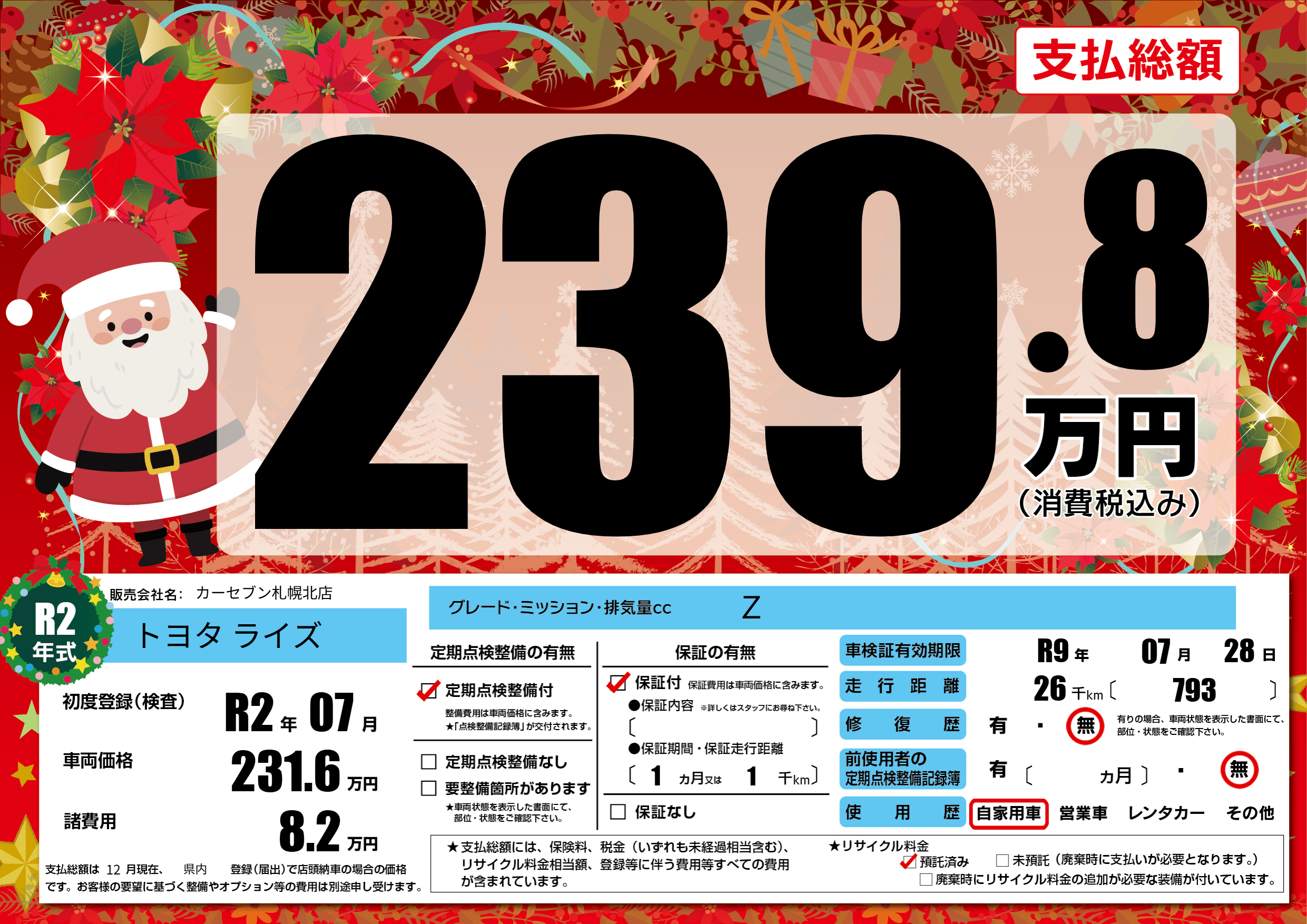 | 走行キロ | 2.6万km | 初年度登録 | R2年07月 |