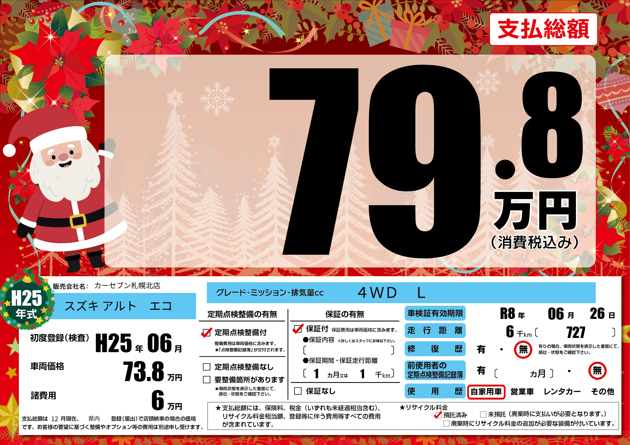 | 車名 | スズキ アルト エコ | グレード ミッション 排気量 |