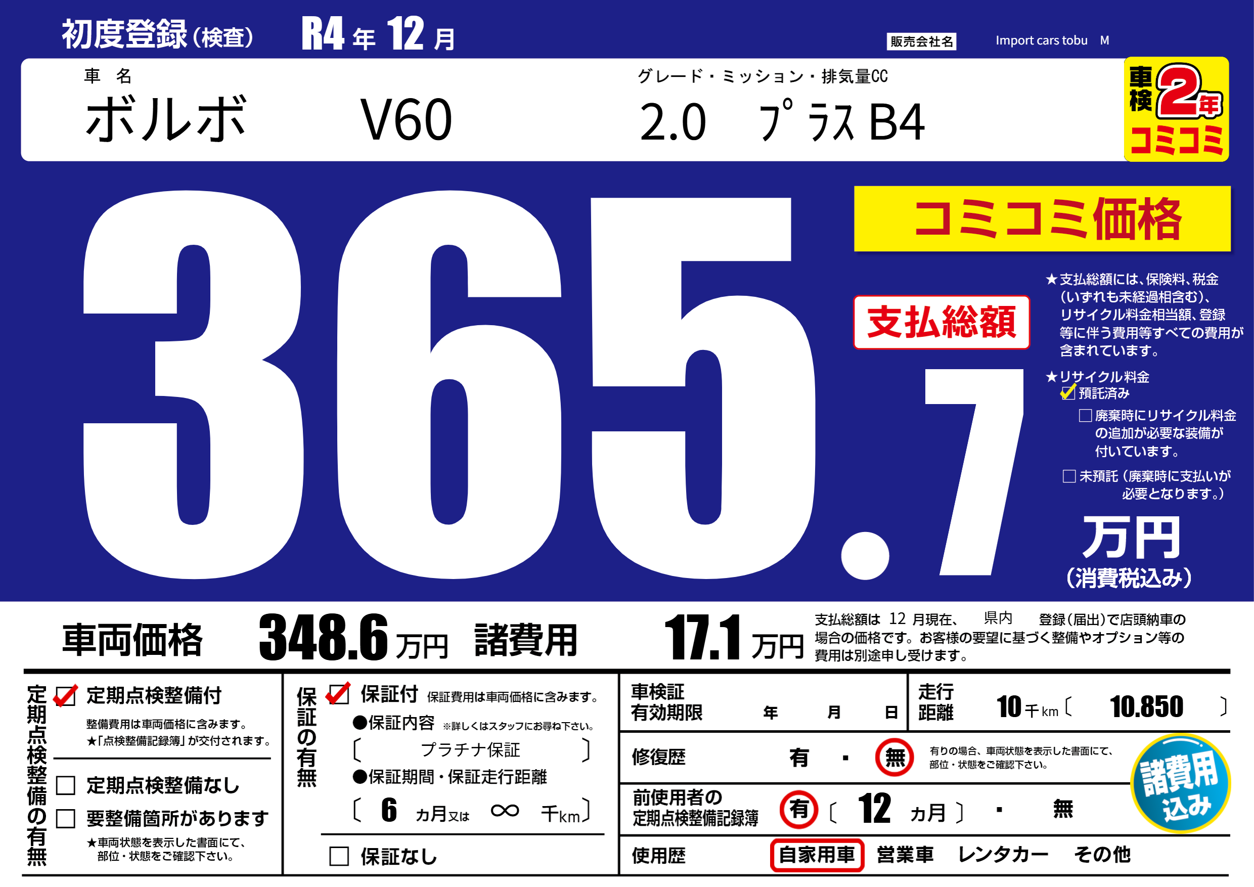 保証付き 保証内容( プラチナ保証) 6ヶ月または(∞)千kmまで |