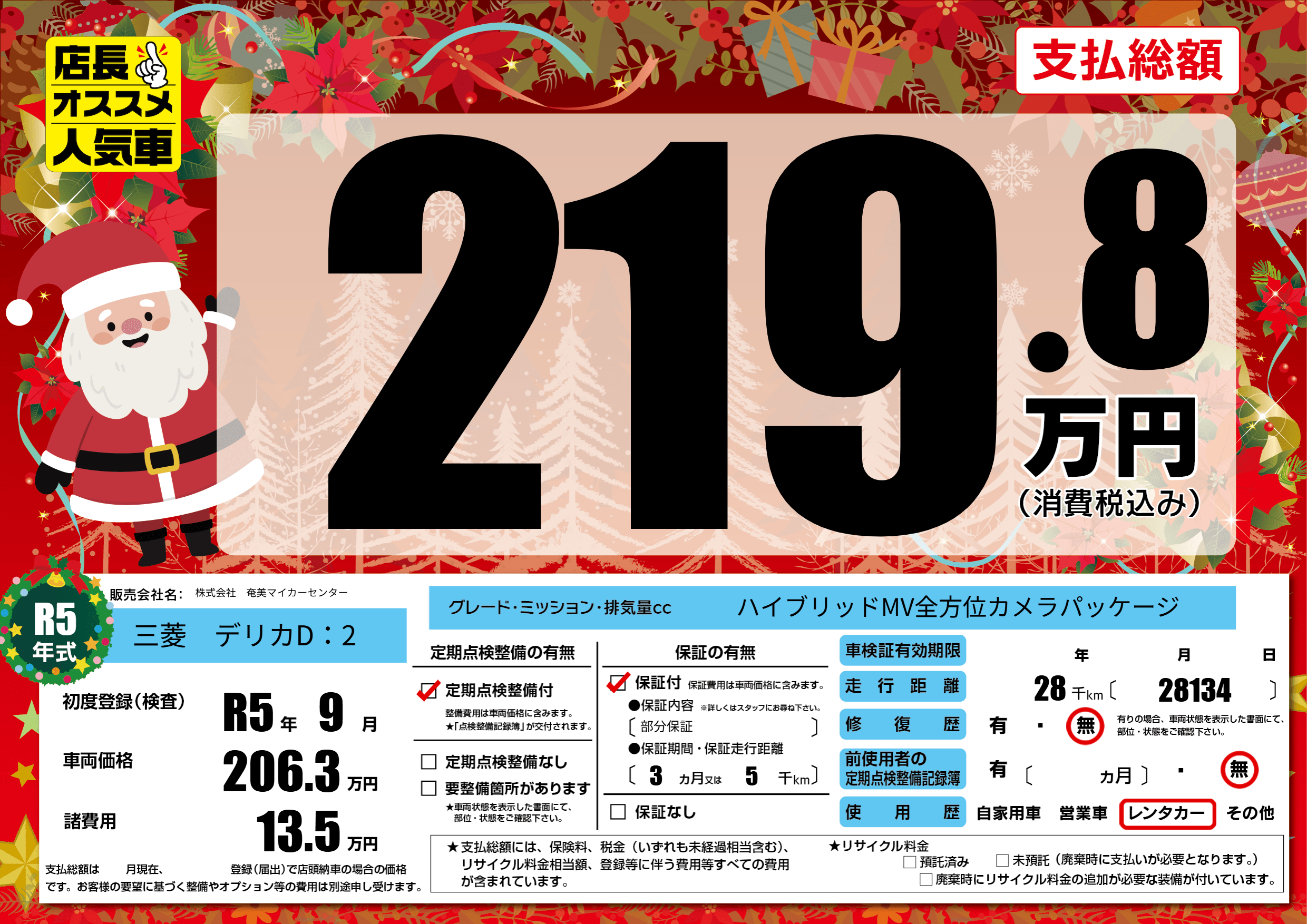 | 走行キロ | 2.8万km | 初年度登録 | R5年9月 |