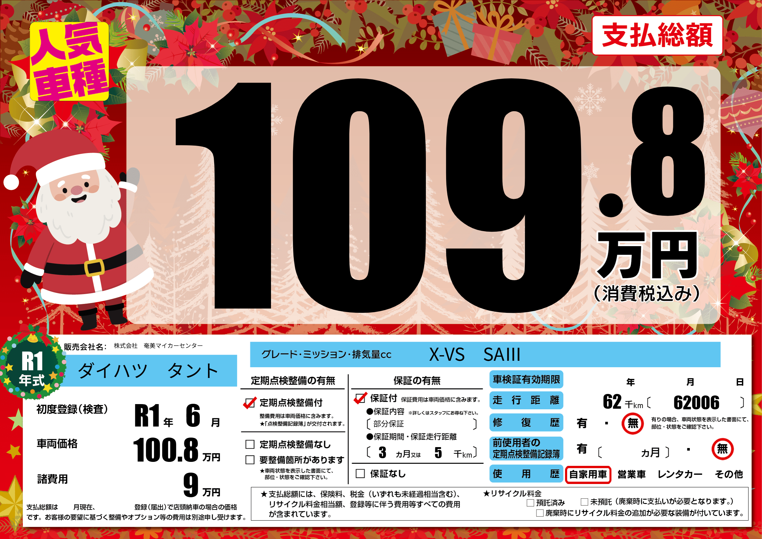 | 定期点検整備 | 定期点検整備あり | ||