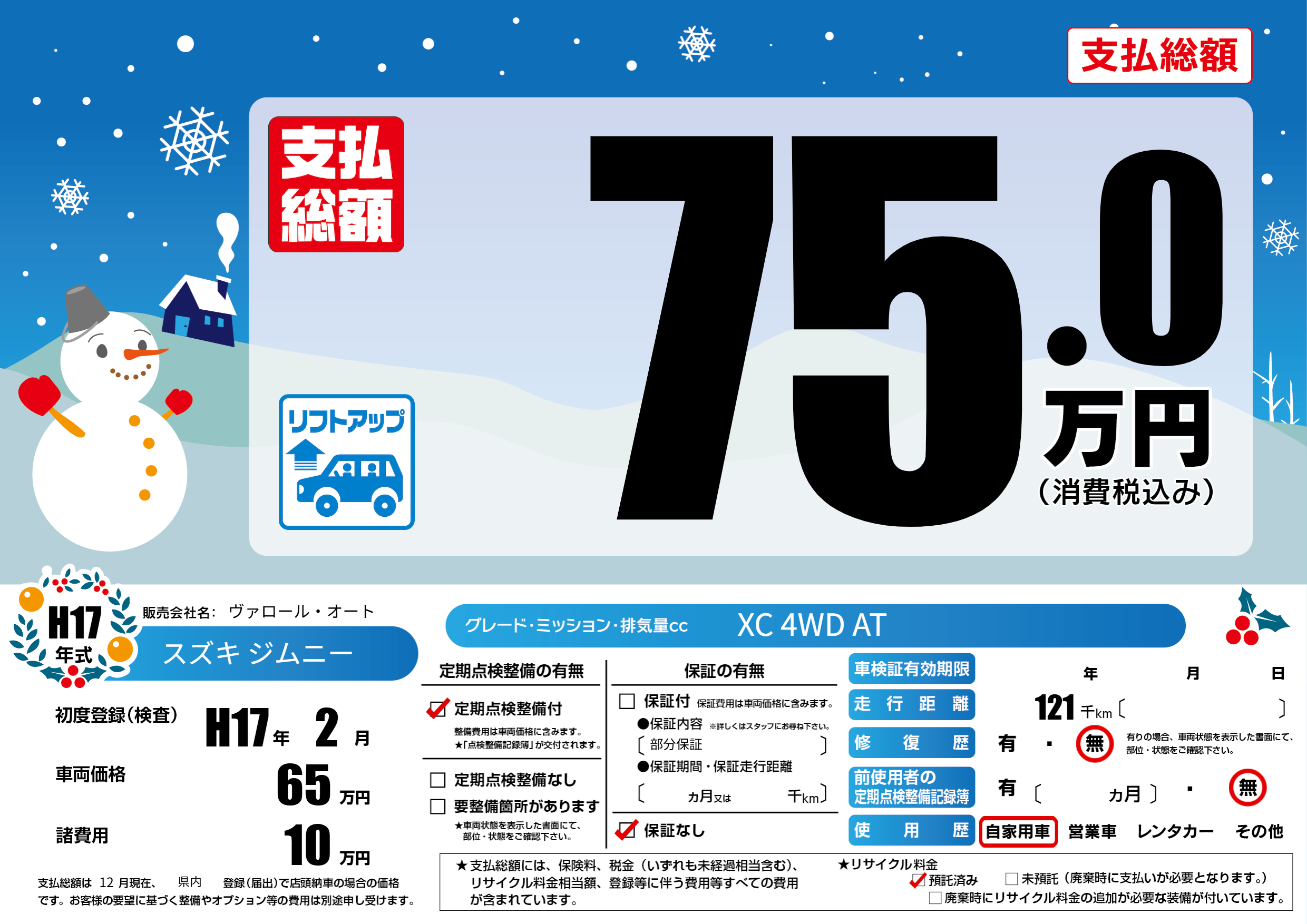 | 走行キロ | 12.1万km | 初年度登録 | H17年2月 |
