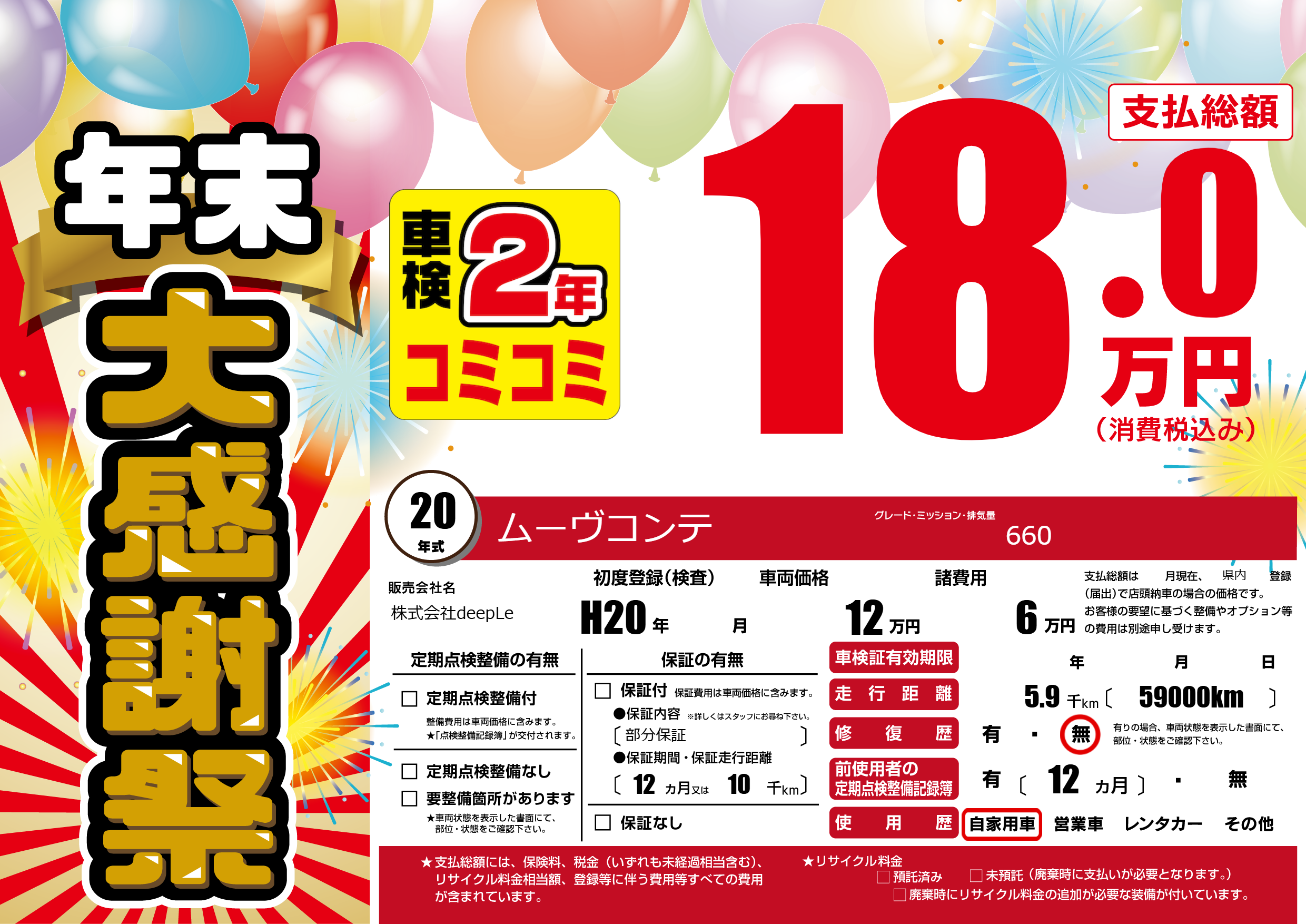 | 車検制限 | - 年 - 月 - 日 | ||