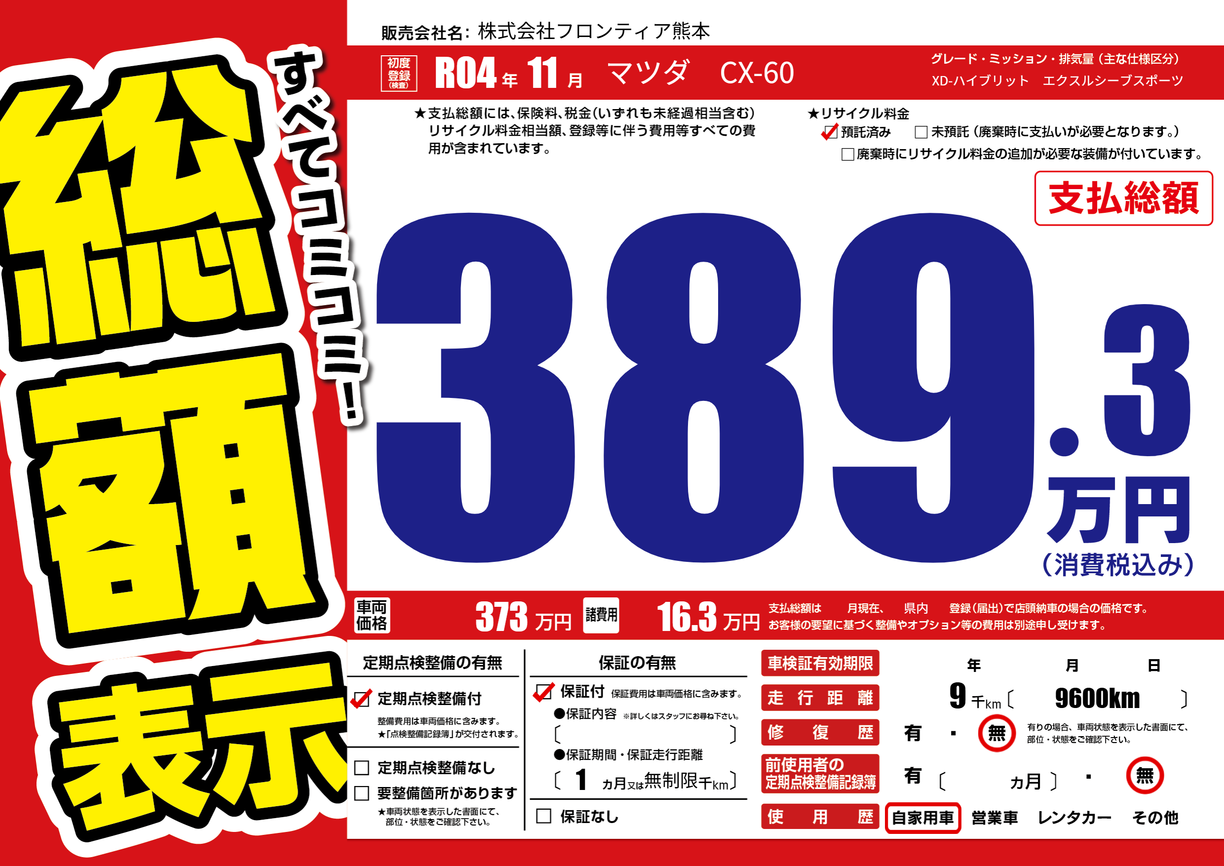| 定期点検整備 | 定期点検整備あり | ||