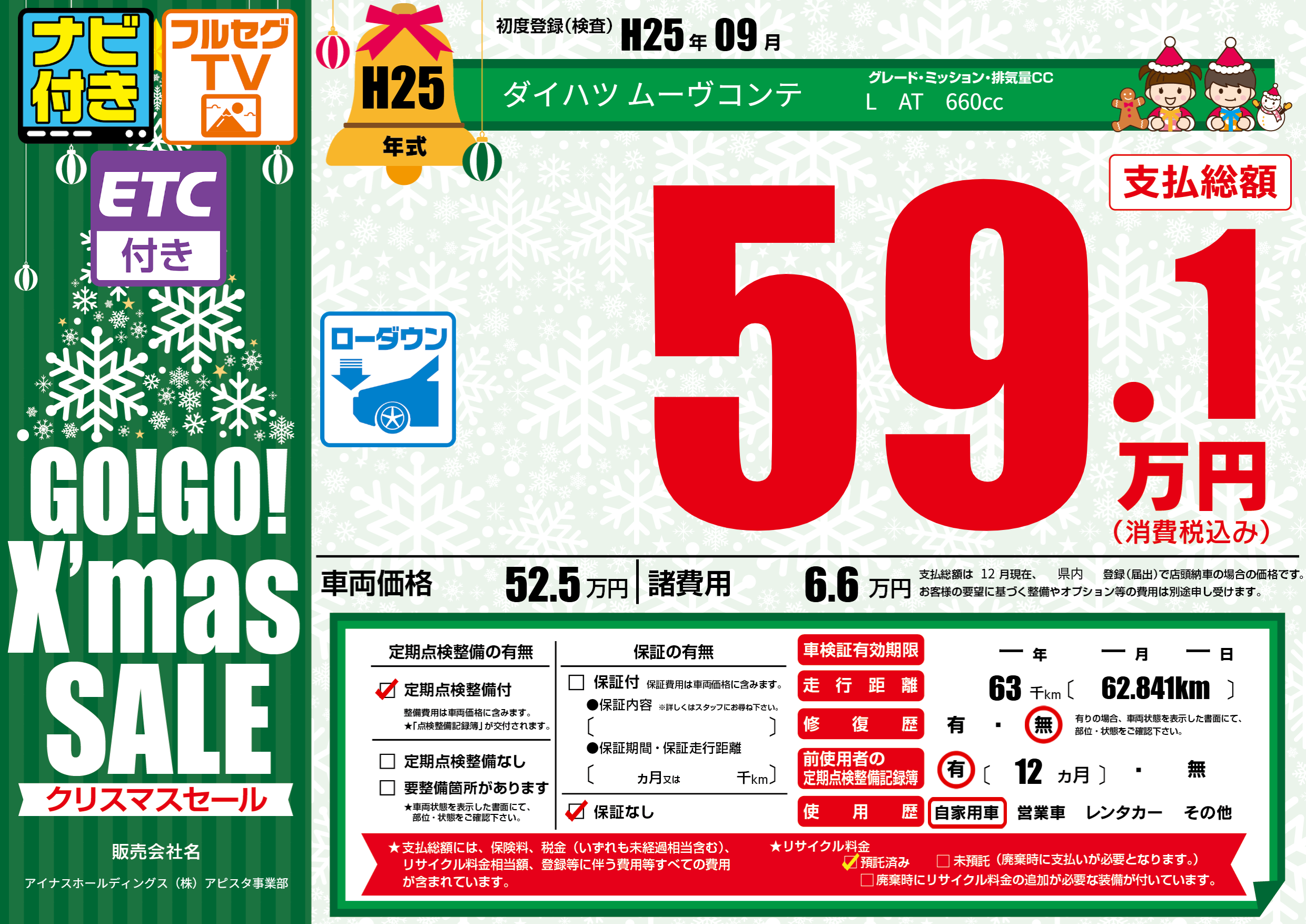 | 定期点検整備 | 定期点検整備あり | ||