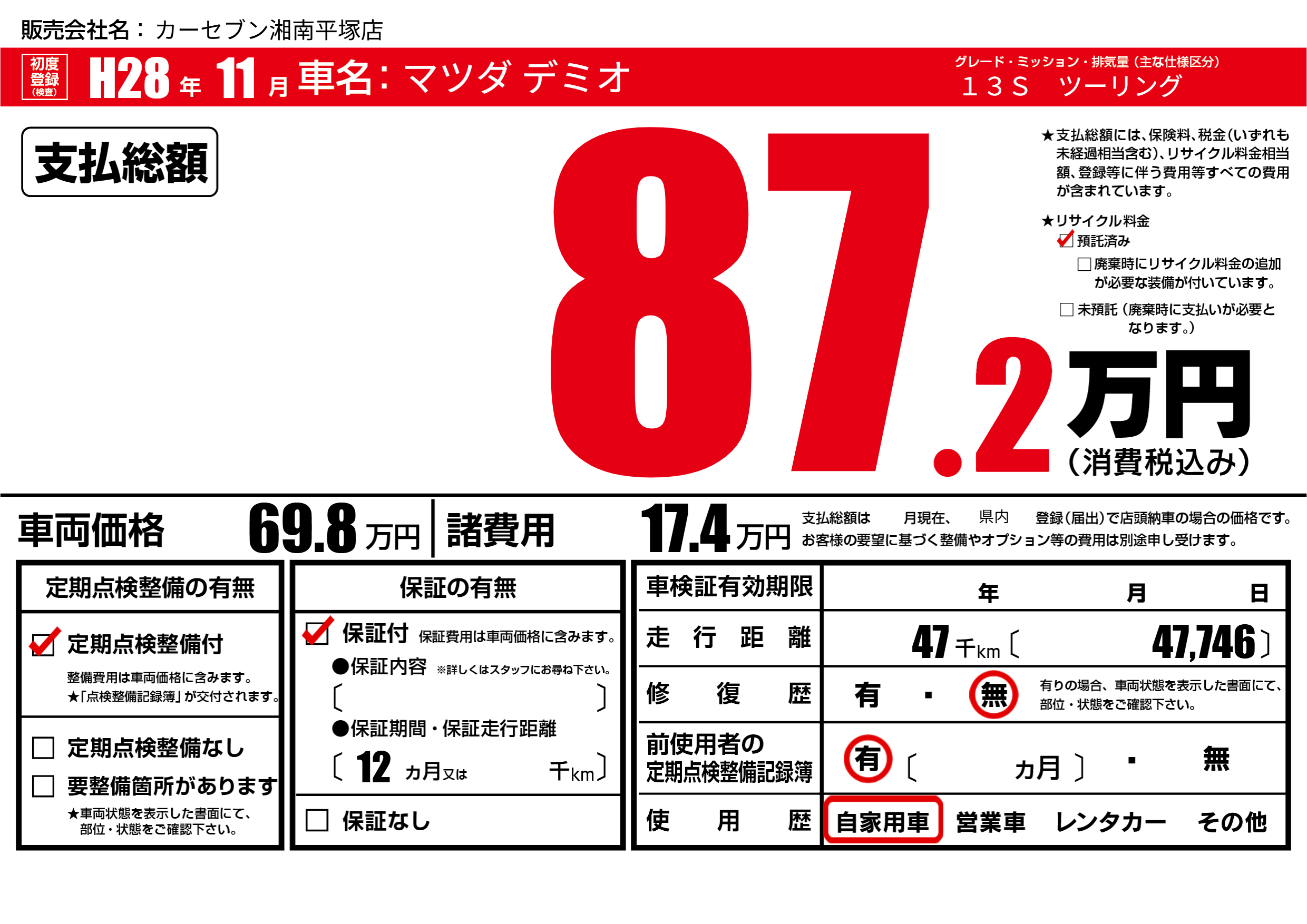 | 定期点検整備 | 定期点検整備あり | ||