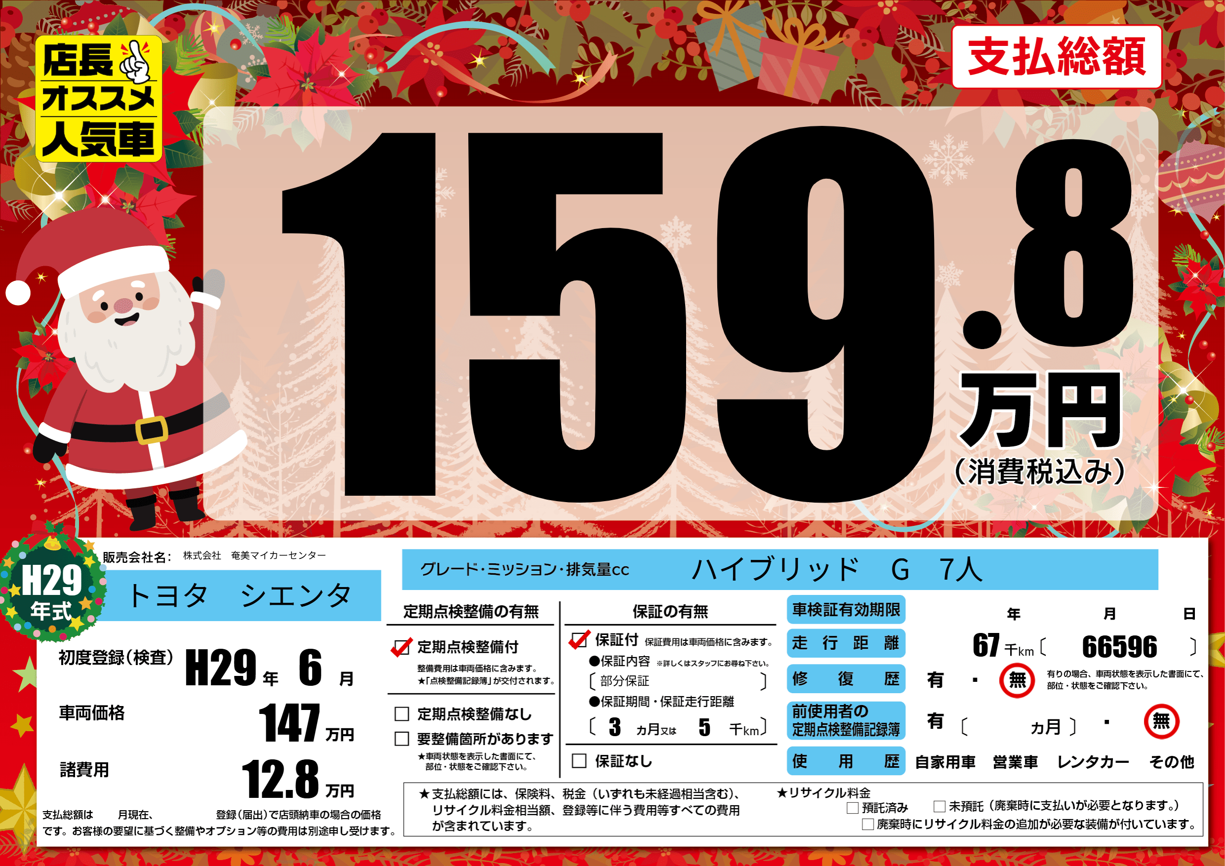 | 車名 | トヨタ シエンタ | グレード ミッション 排気量 |
