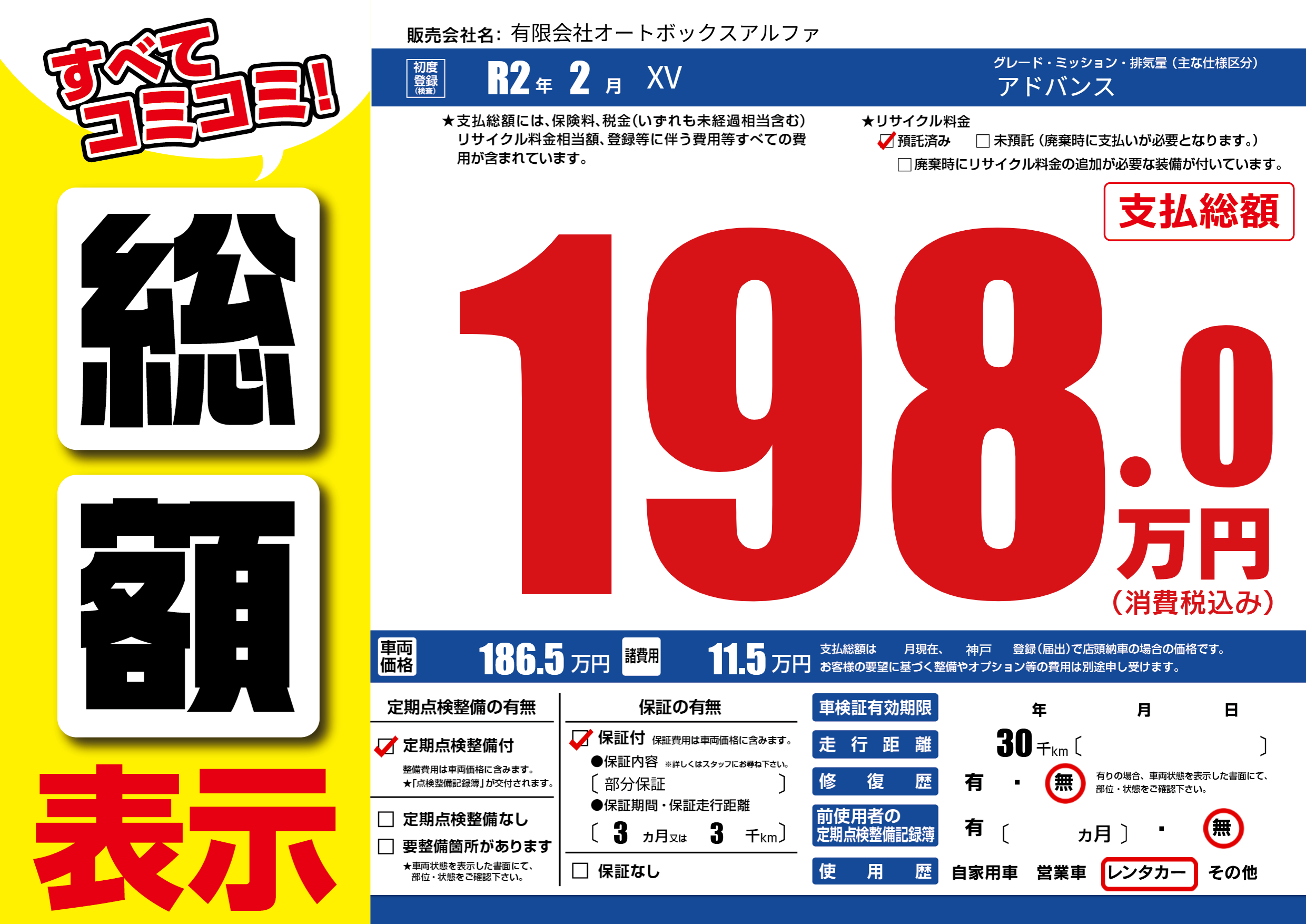 保証付き 保証内容(部分保証) 3ヶ月または(3)千kmまで |
