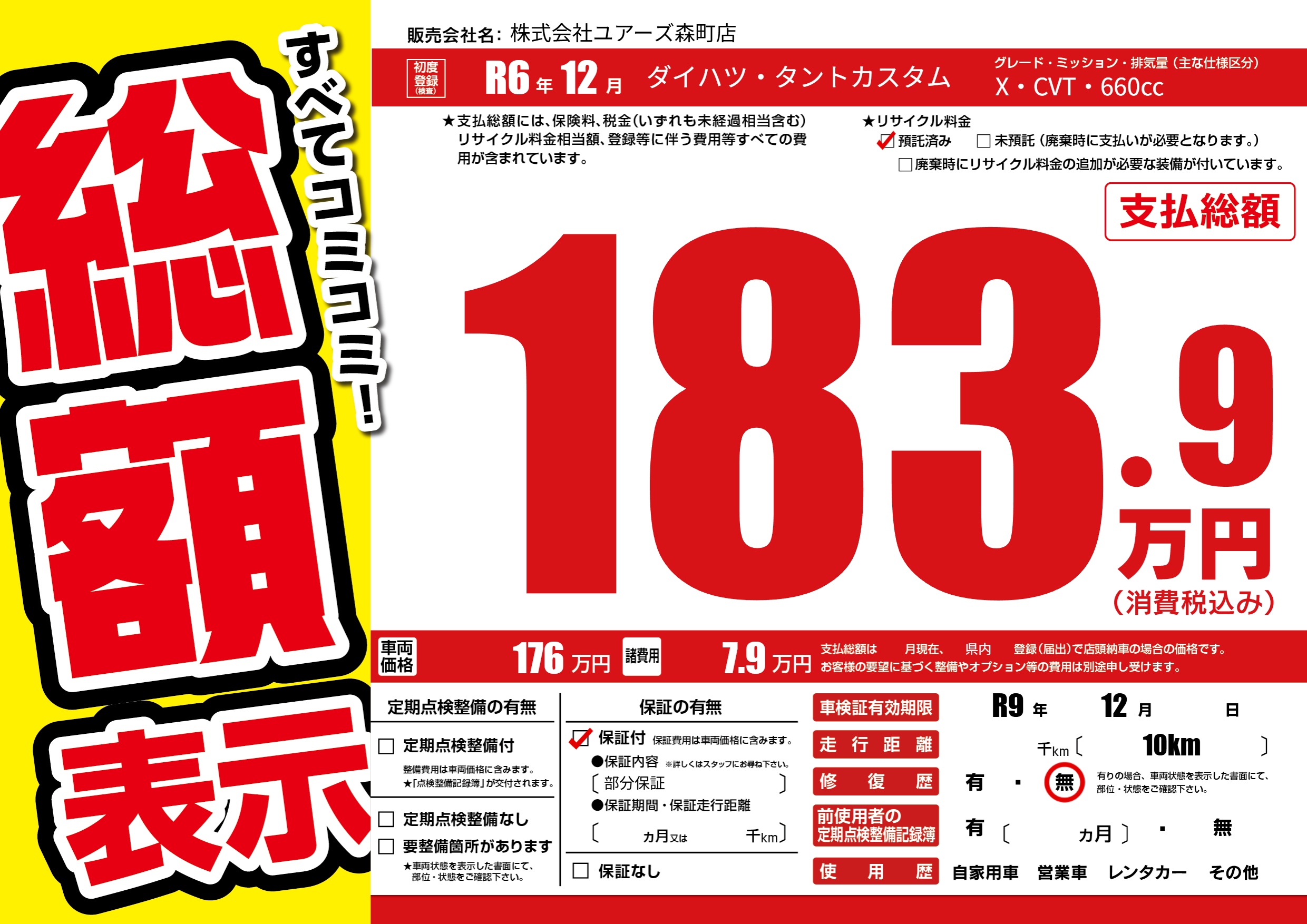 保証付き 保証内容(部分保証) ---ヶ月または()千kmまで |