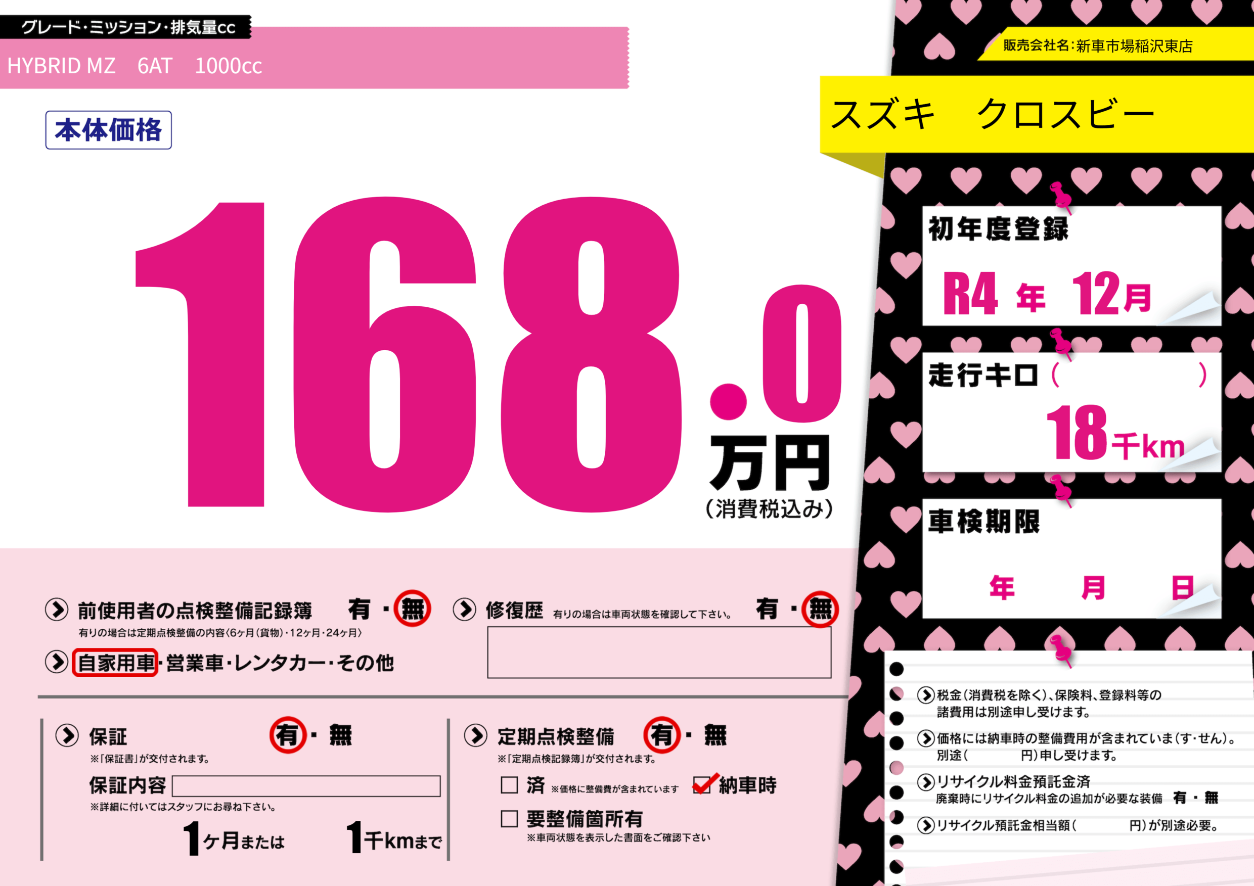 | 定期点検整備 | 定期点検整備あり 納車時あり | ||