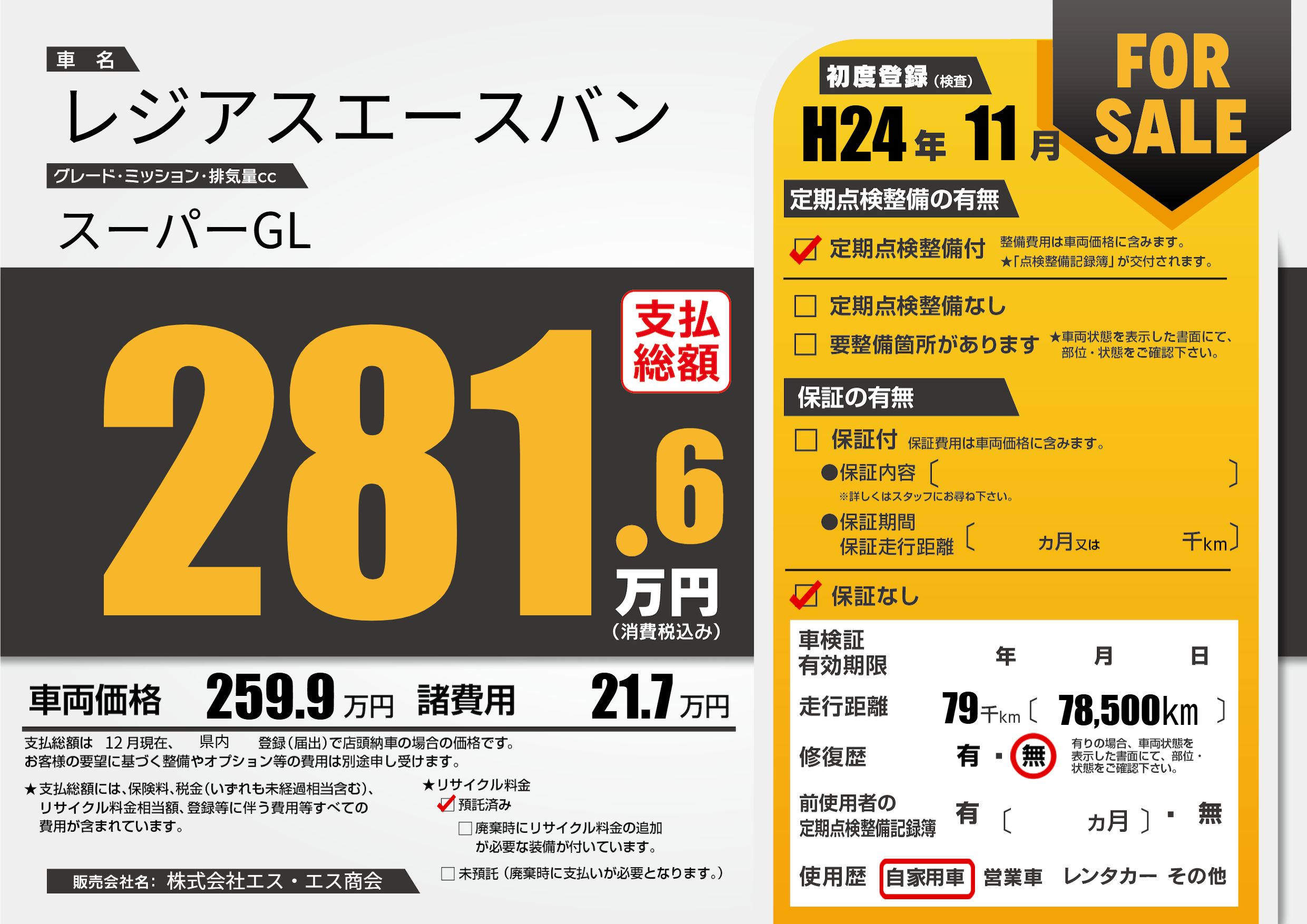 | 走行キロ | 7.9万km | 初年度登録 | H24年11月 |