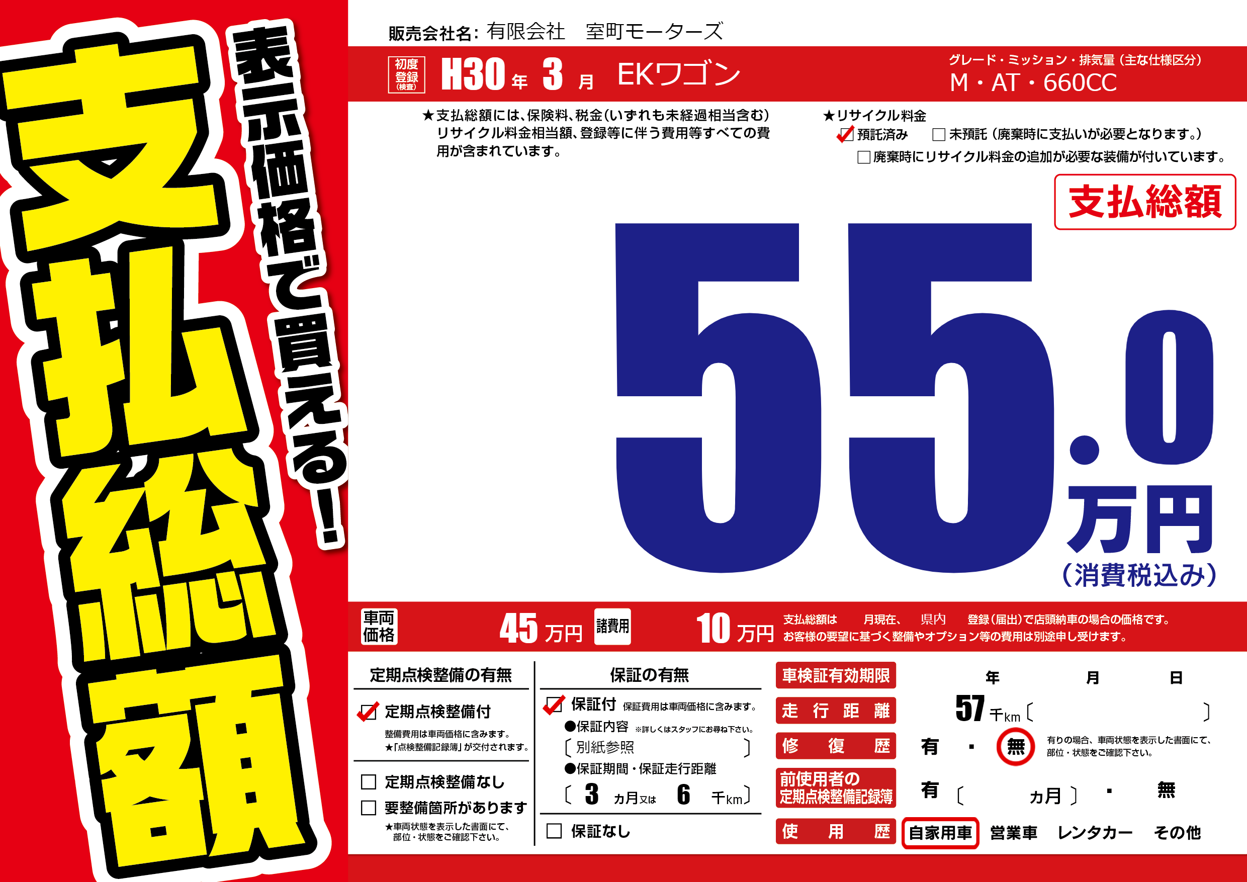 | 車名 | EKワゴン | グレード ミッション 排気量 |
